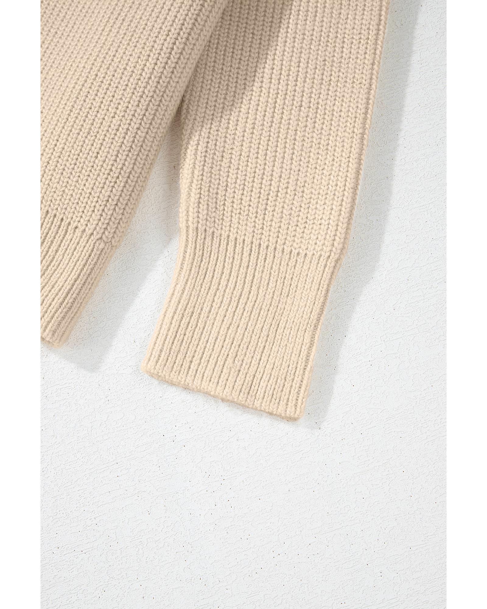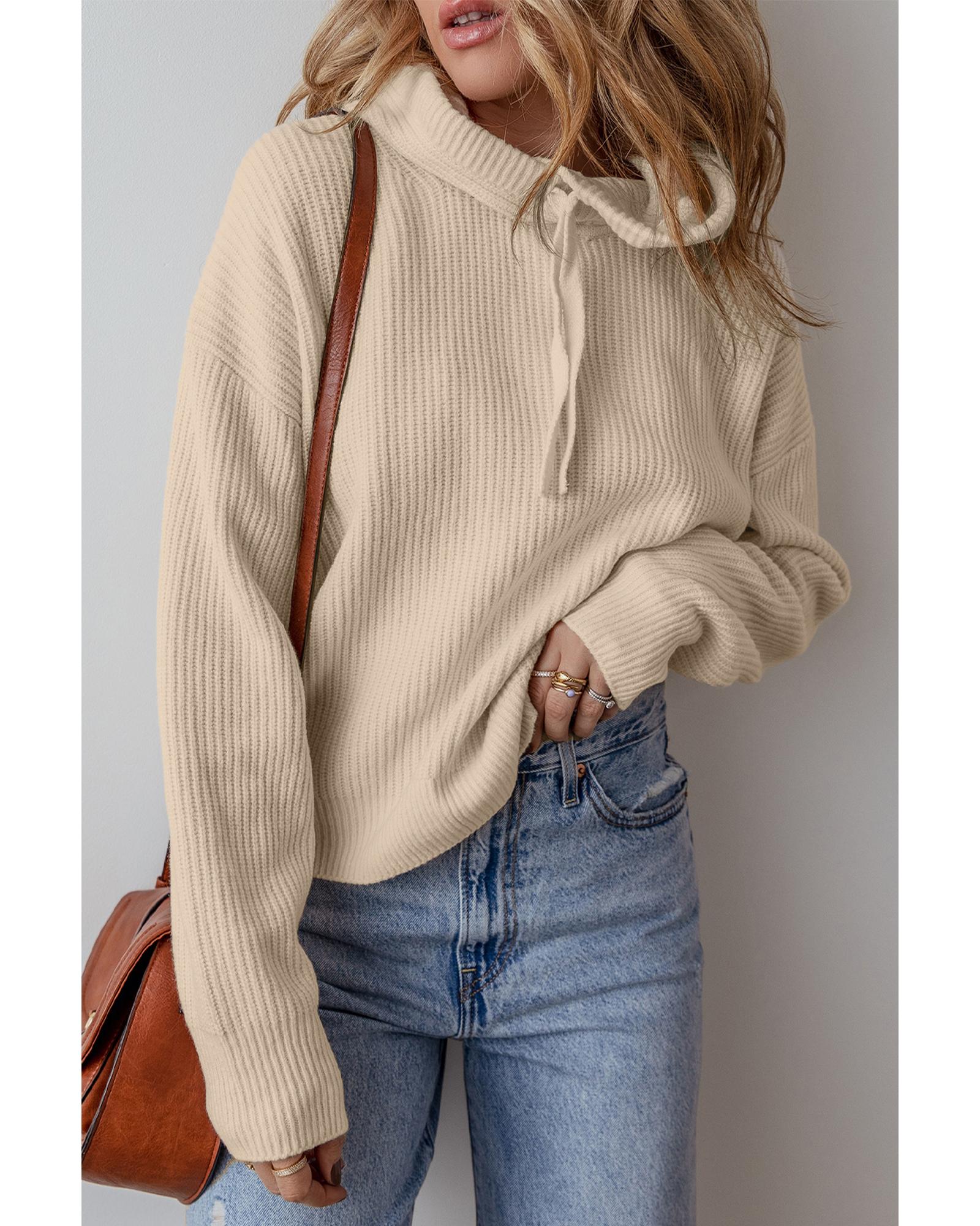 Beige Solid Color Drawstring Hooded Drop Shoulder Pullover Sweater – XL