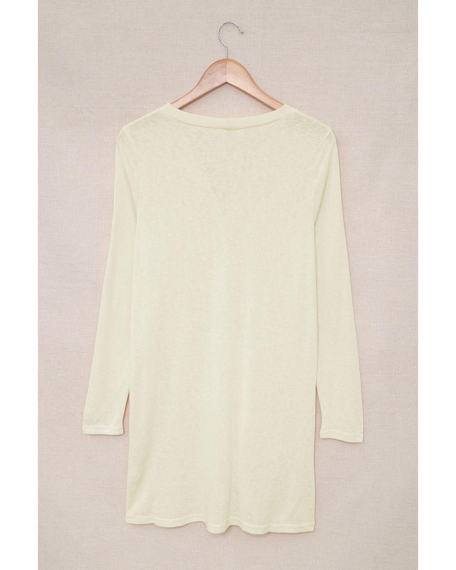 Beige Solid Color Open-Front Buttons Cardigan – 2XL