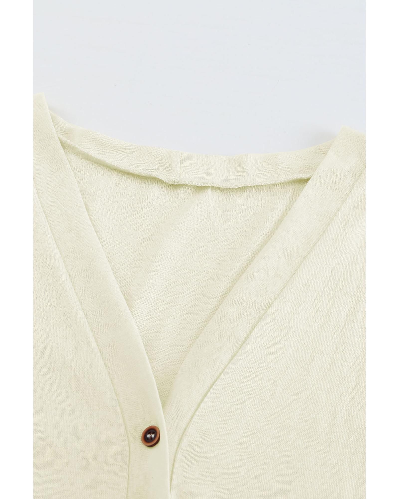 Beige Solid Color Open-Front Buttons Cardigan – XL