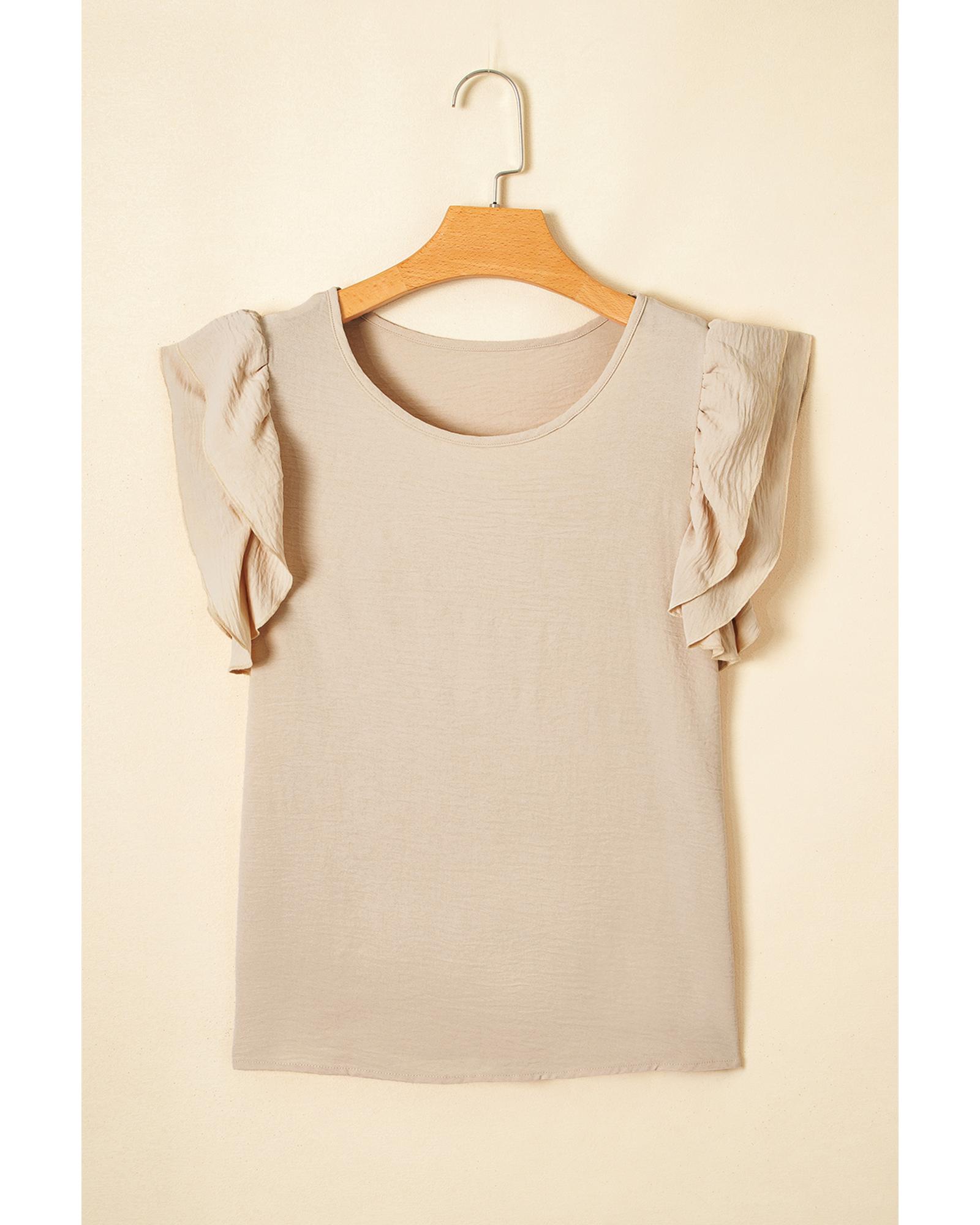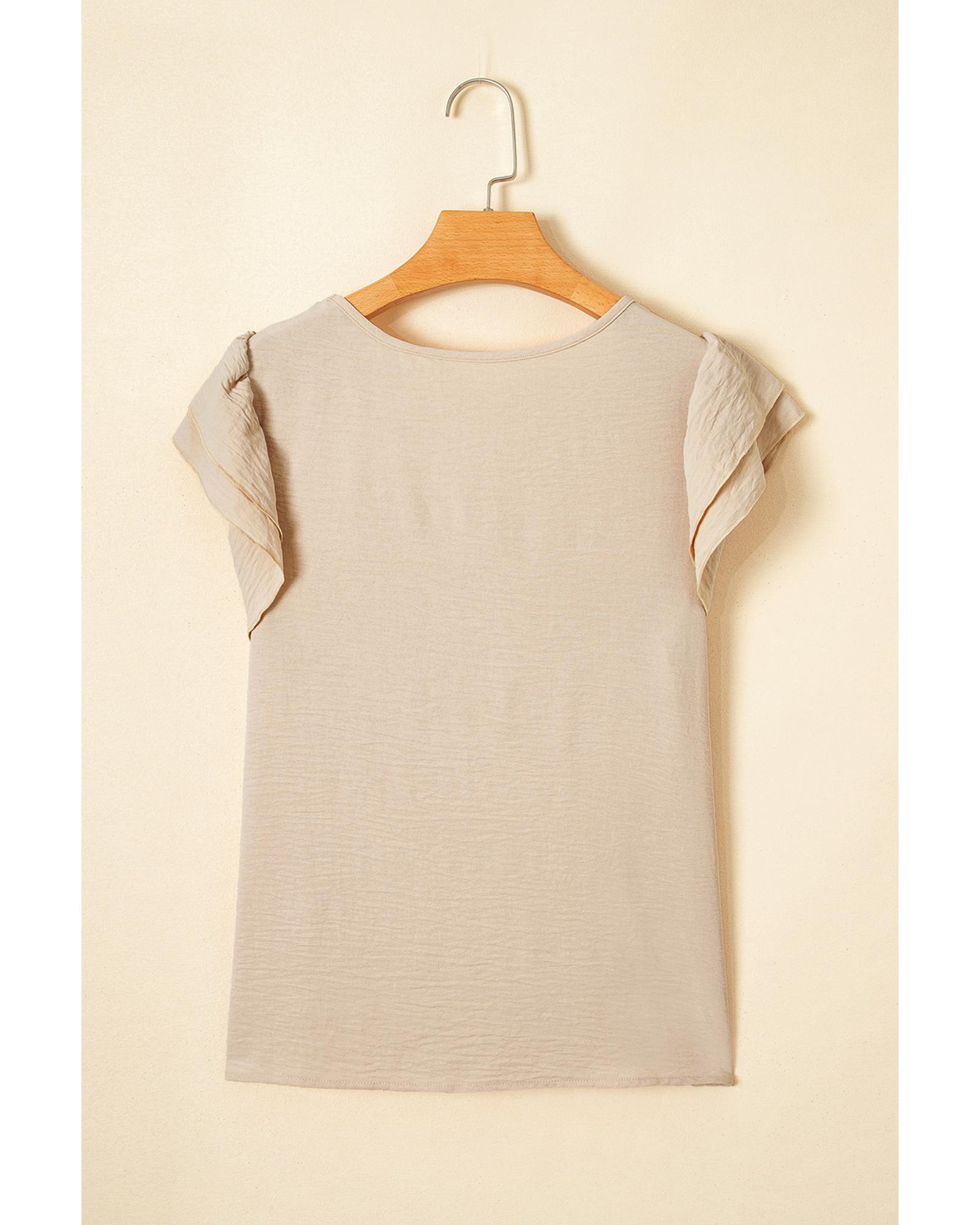 Beige Solid Color Ruffled Short Sleeve Casual Blouse – XL