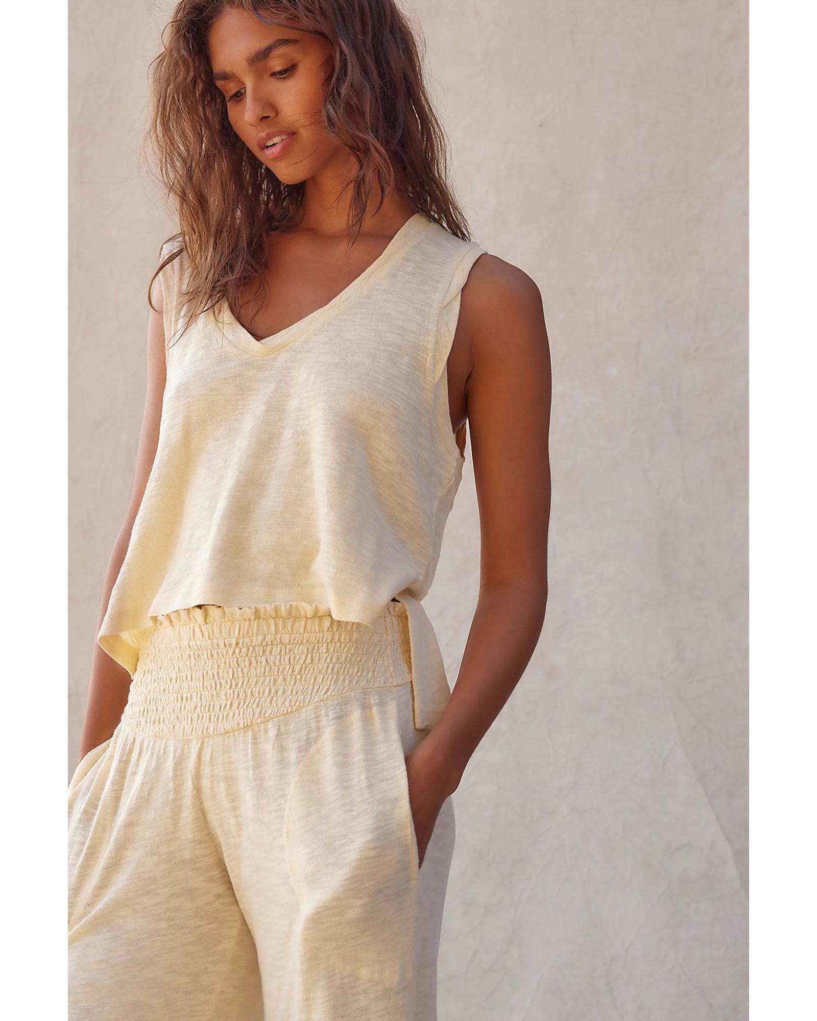 Beige Solid Color Tank Top and Smocked Waist Pants Set – L