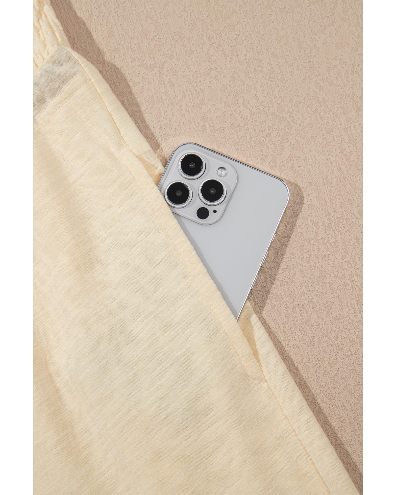 Beige Solid Color Tank Top and Smocked Waist Pants Set – S
