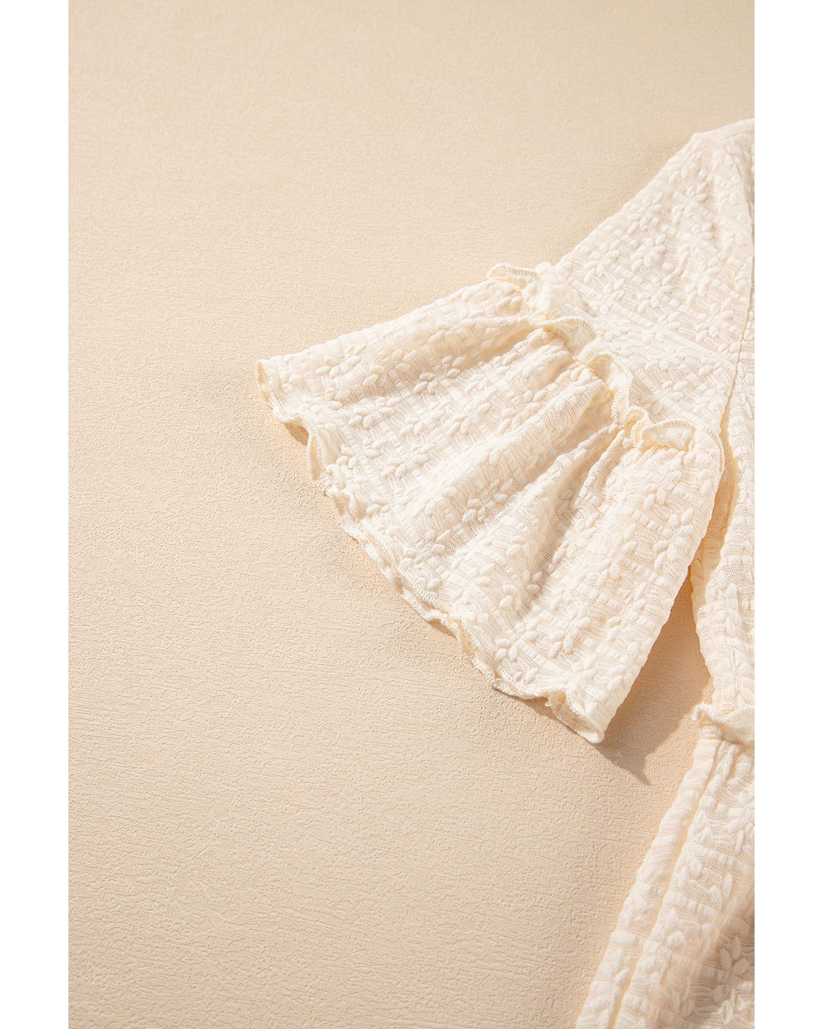 Beige Solid Color Textured Ruffled Short Sleeve Blouse – M