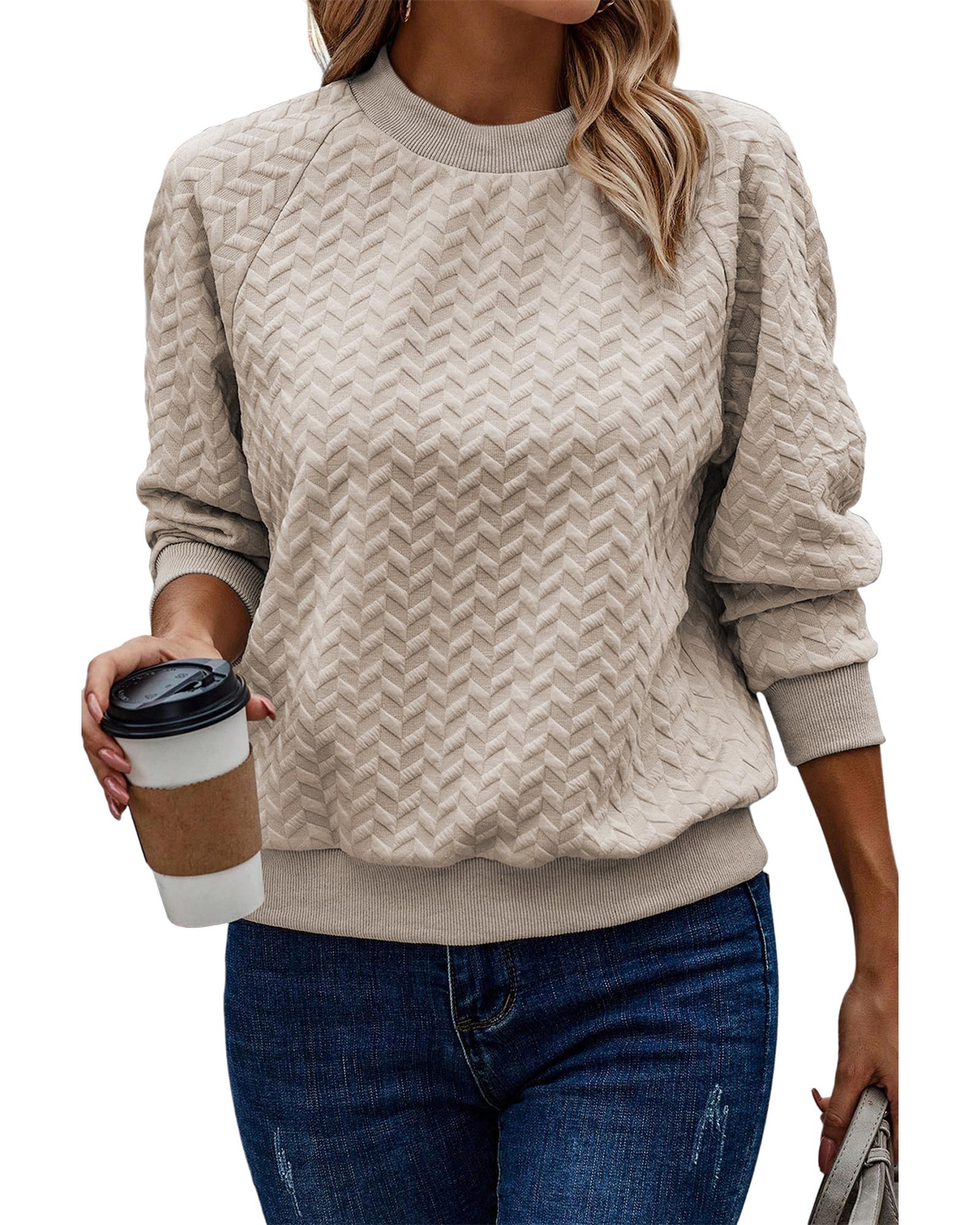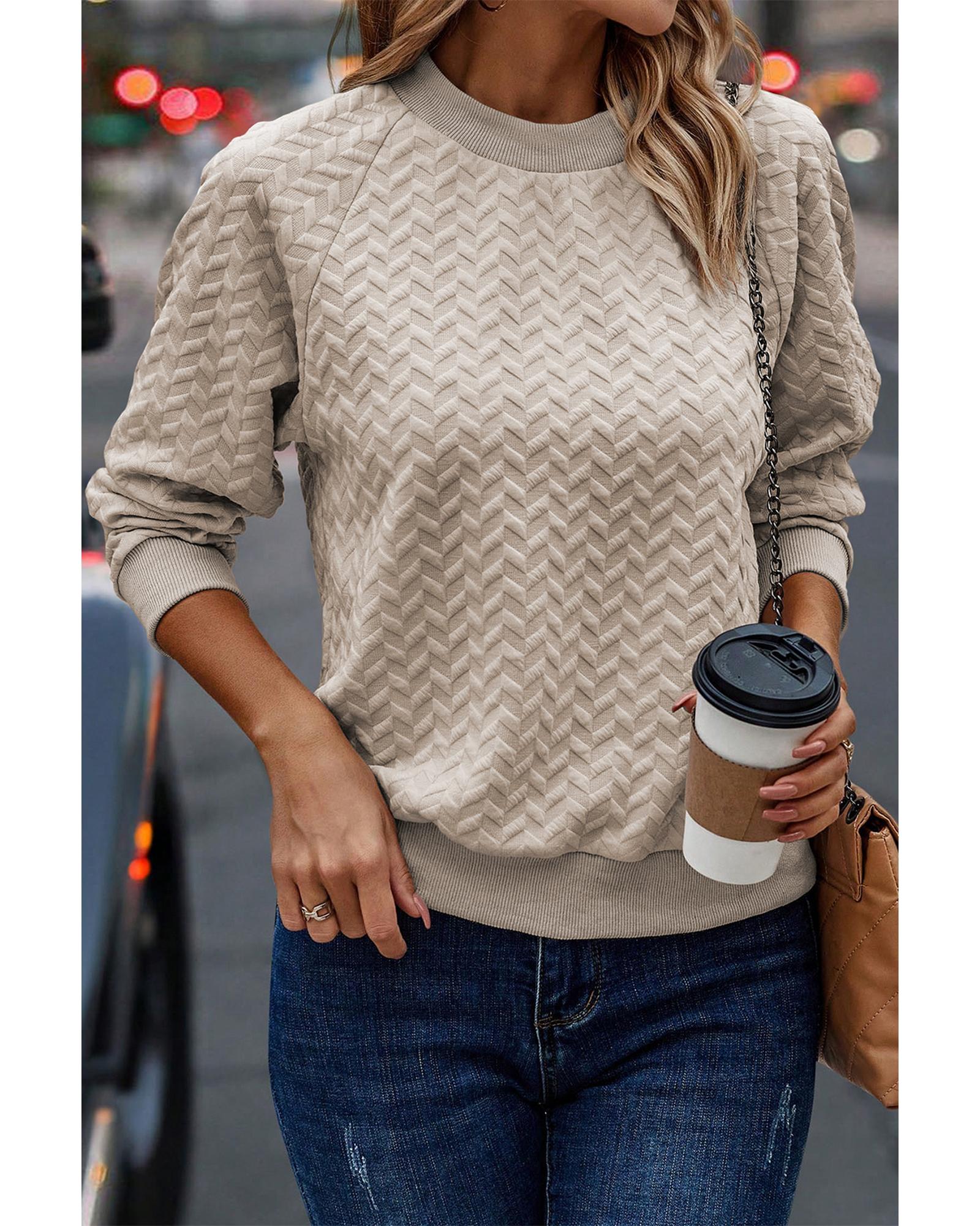 Beige Solid Textured Raglan Sleeve Pullover Sweatshirt – XL
