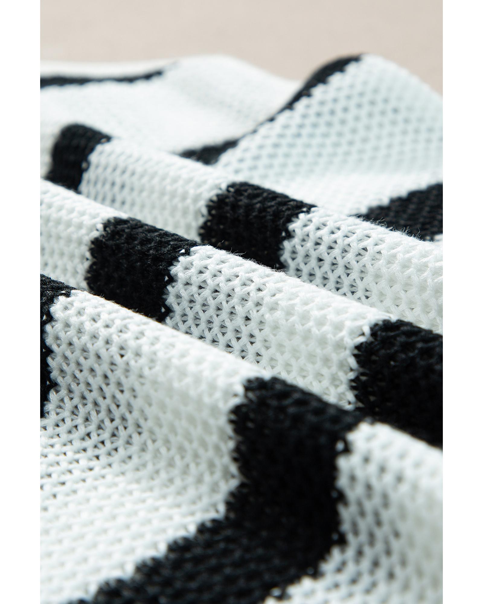 Beige Stripe Loose Knit Fringe Tank Top – L