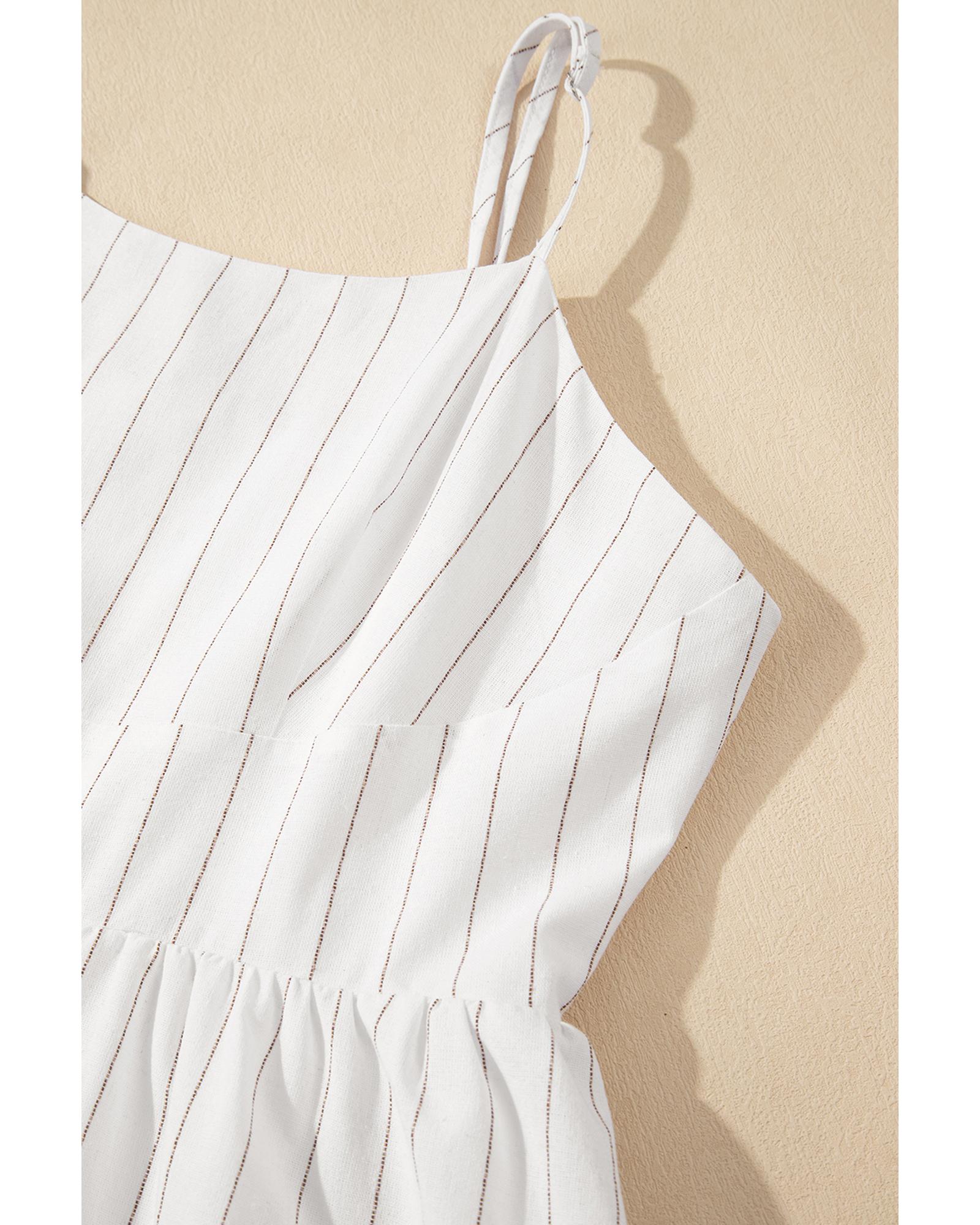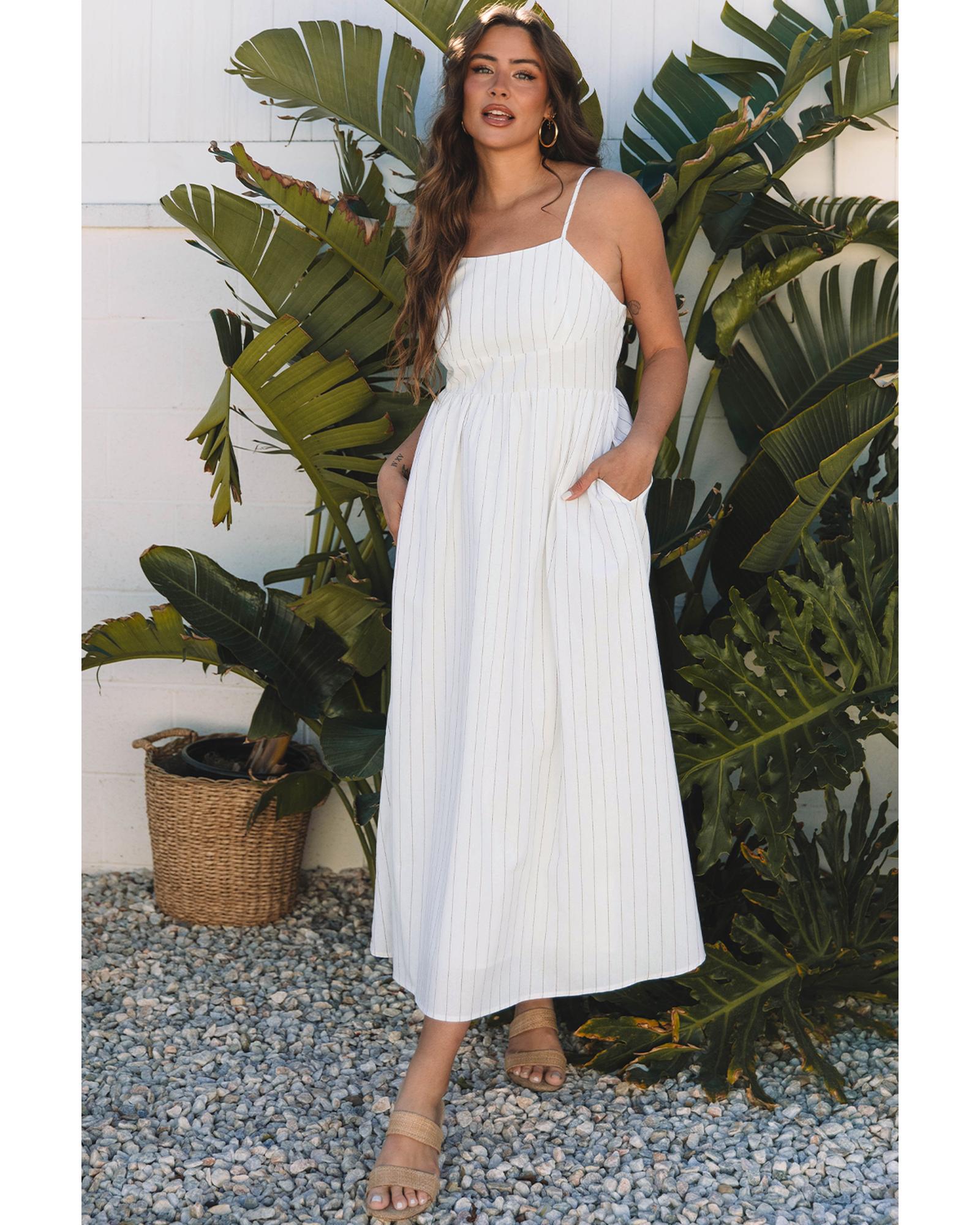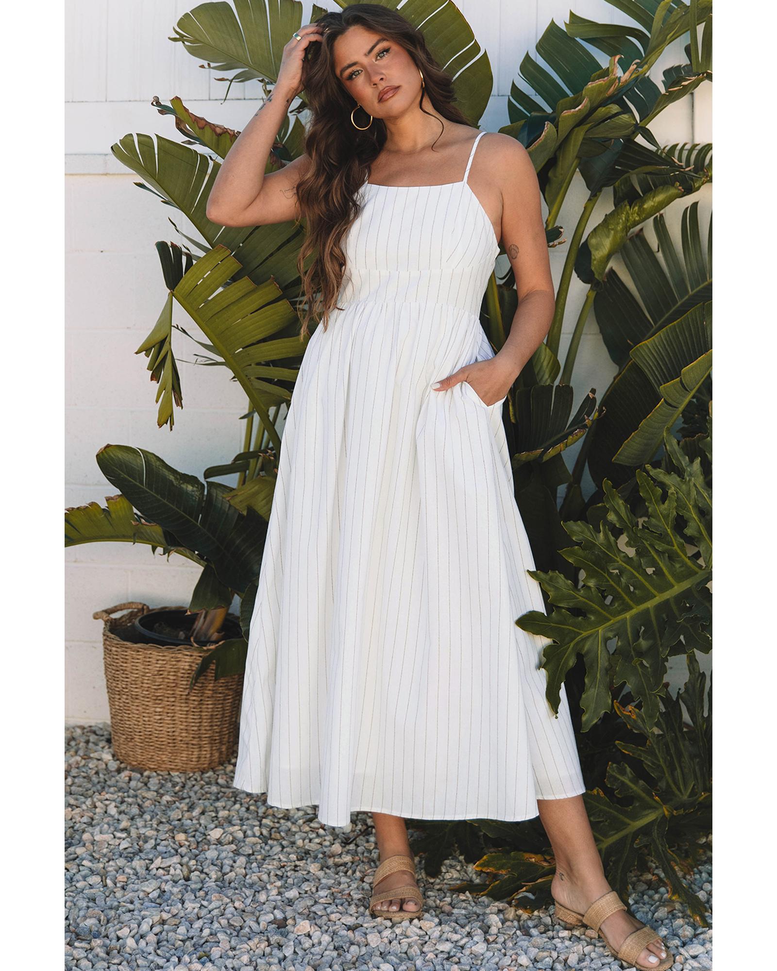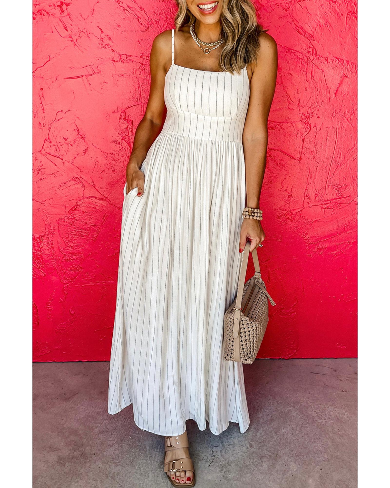 Beige Stripe Spaghetti Strap Pocketed High Waist Maxi Dress – L
