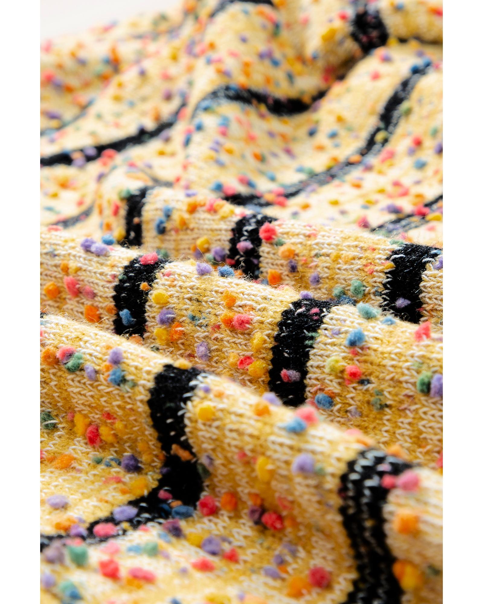 Beige Striped Pom Pom Knit Open Front Long Cardigan – S
