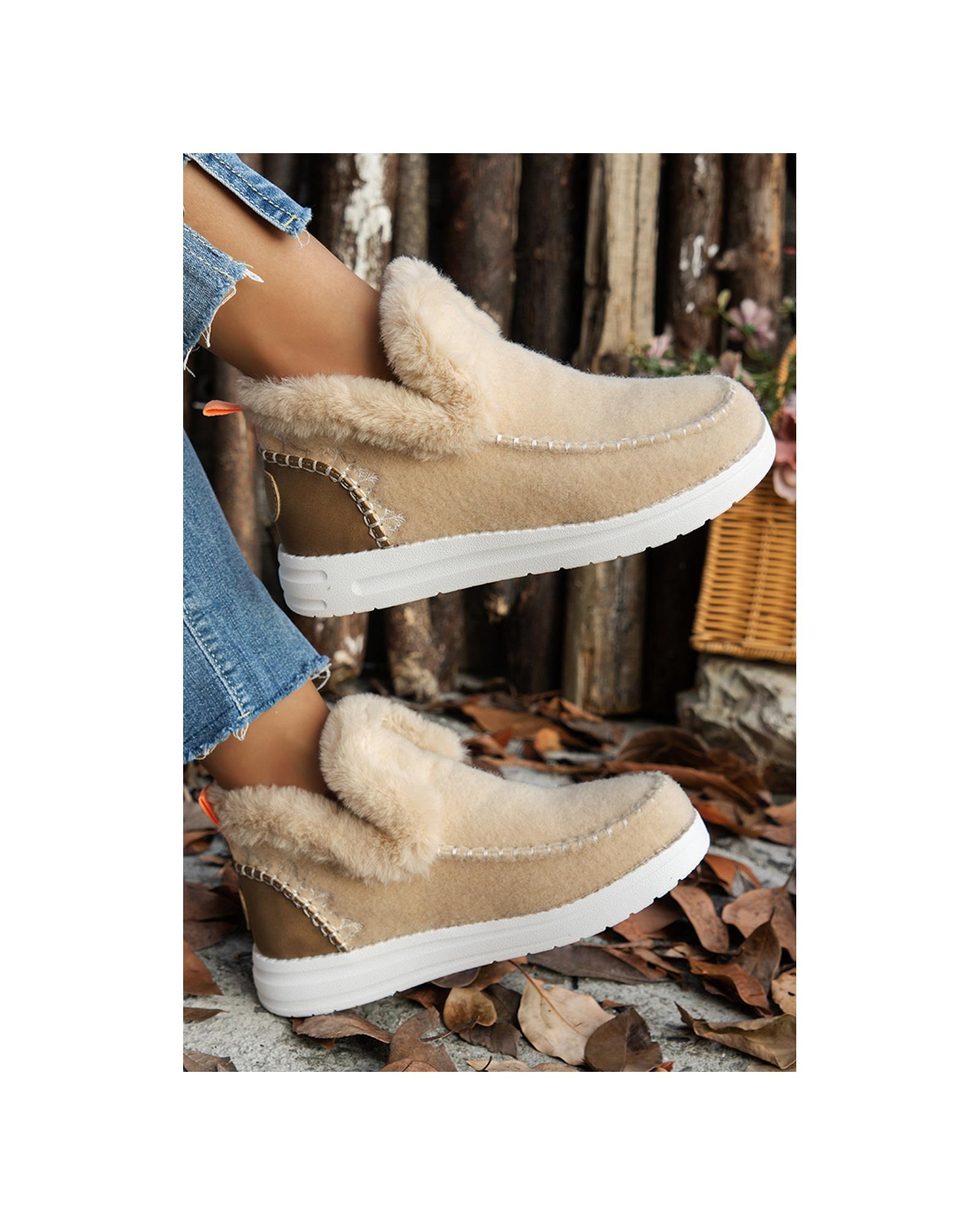 Beige Suede Stitching Patchwork Plush Lined Anklet Boots - 37 EU