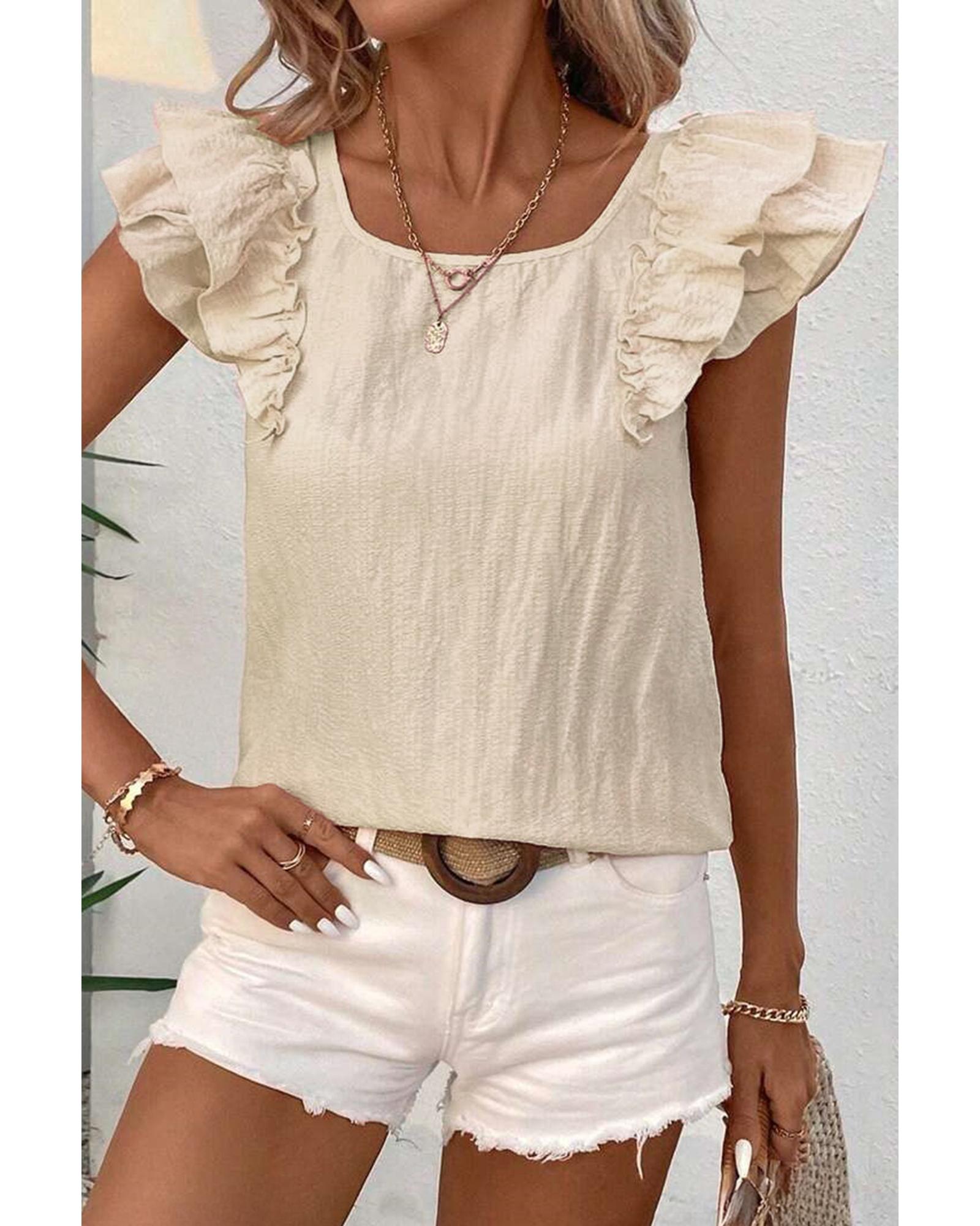 Beige Textured Bow Knot Frilled Butterfly Sleeve Blouse – XL