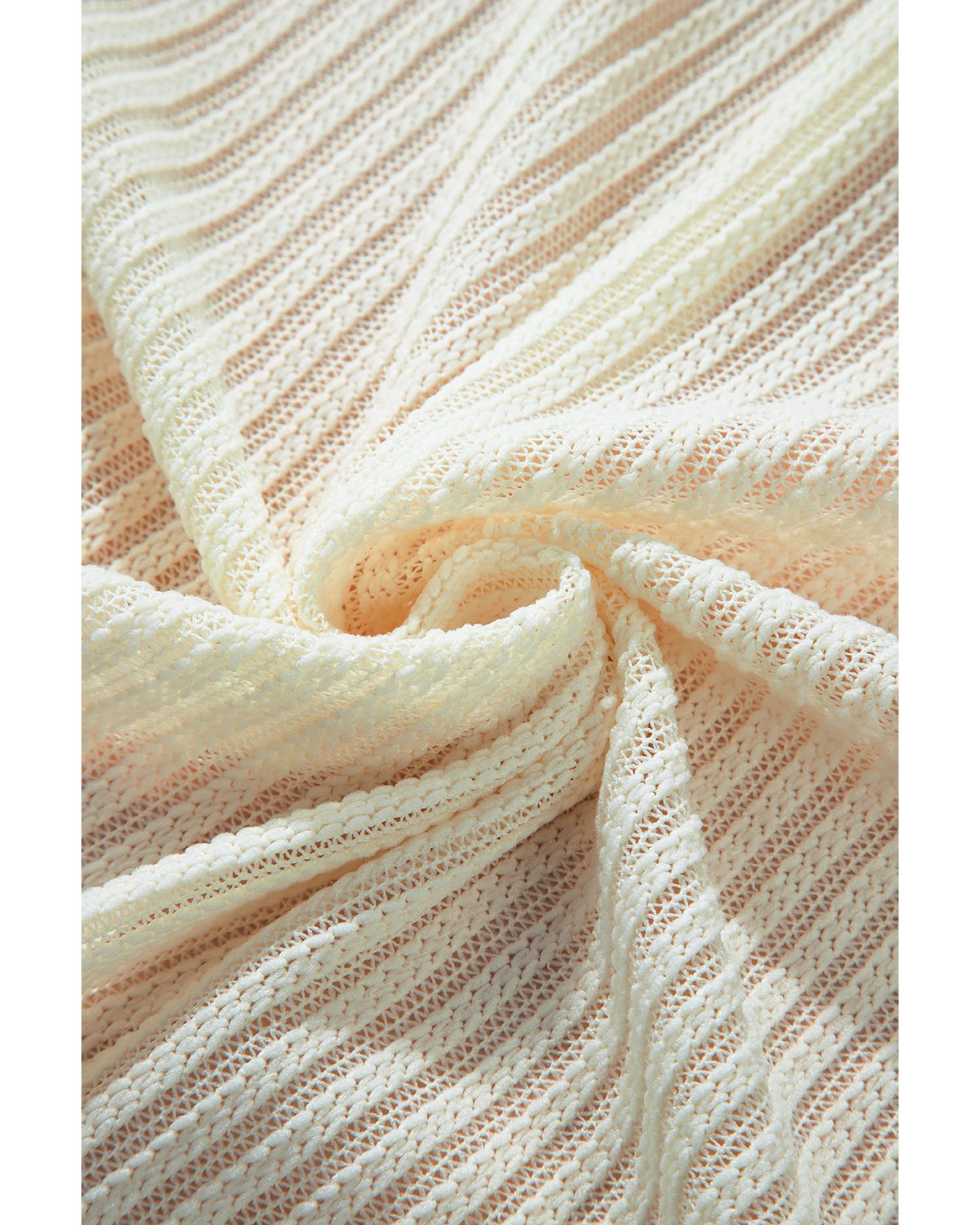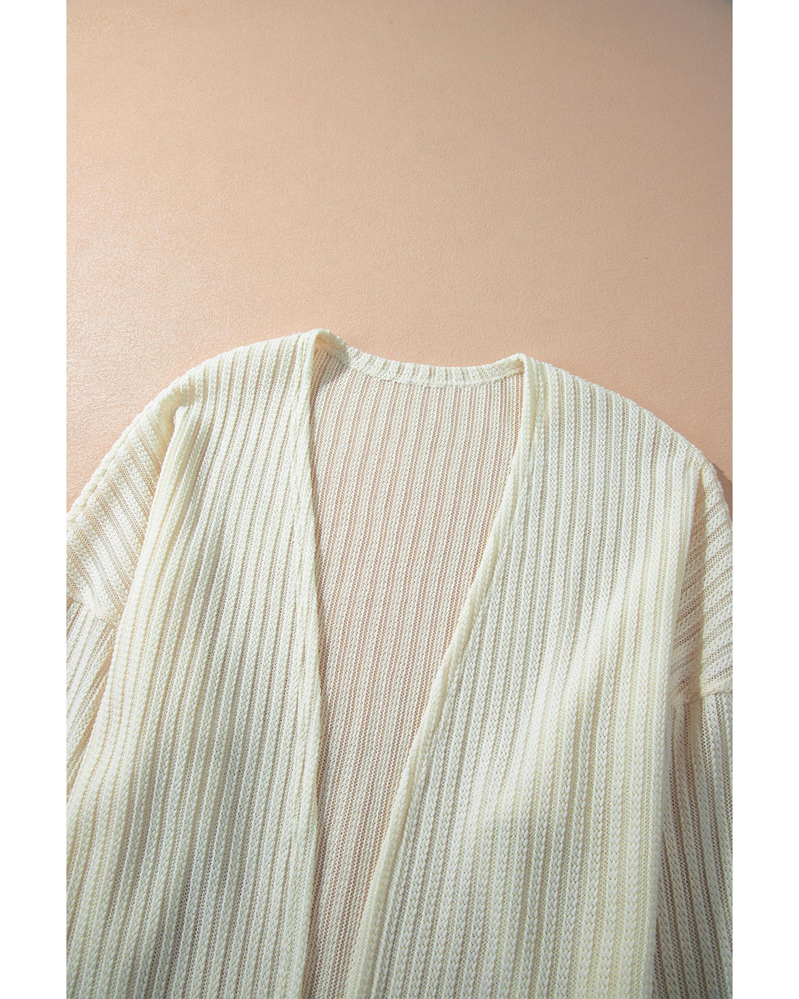 Beige Textured Lantern Sleeve Open Kimono – S
