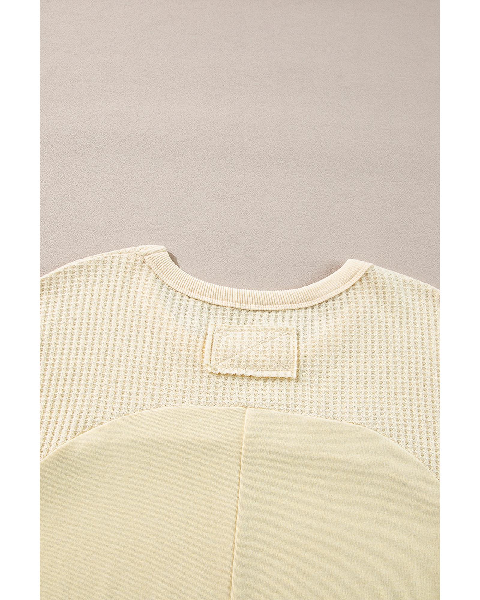 Beige Thermal Knit Patchwork Exposed Seam Long Sleeve Top – M