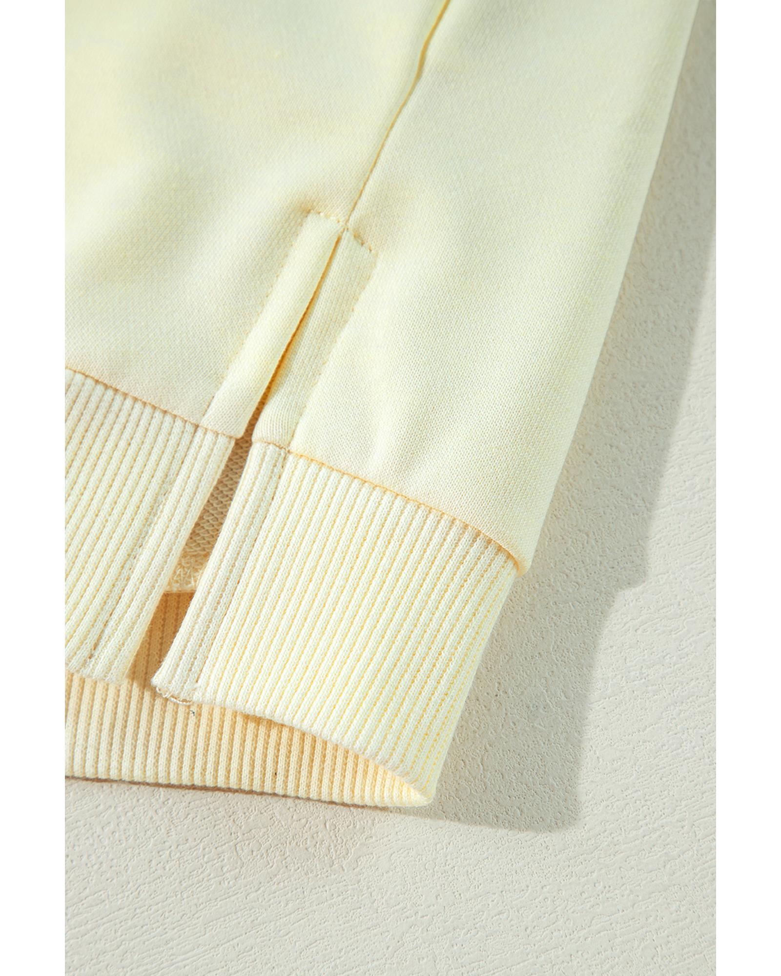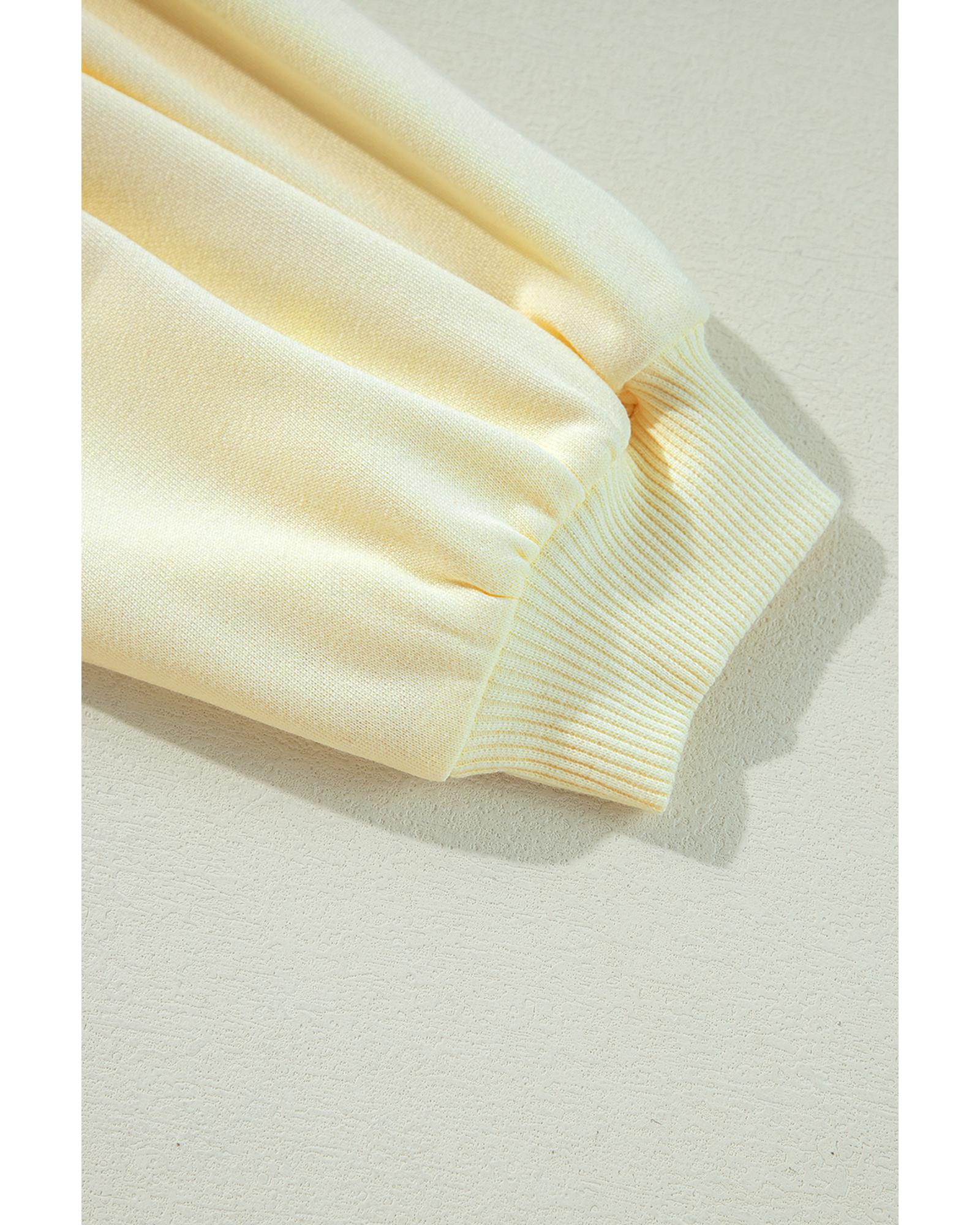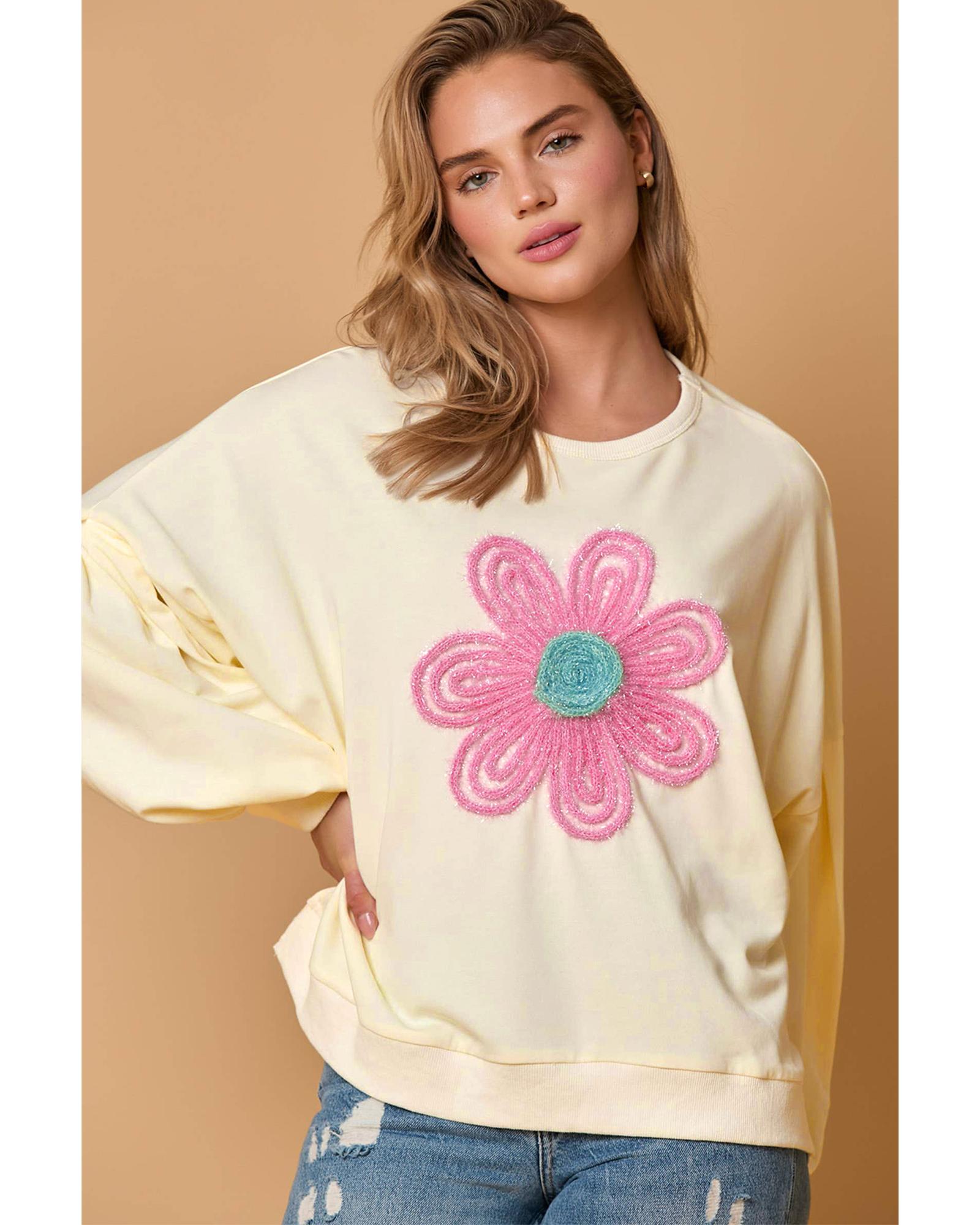 - Beige Tinsel Flower Dropped Puff Sleeve Sweatshirt