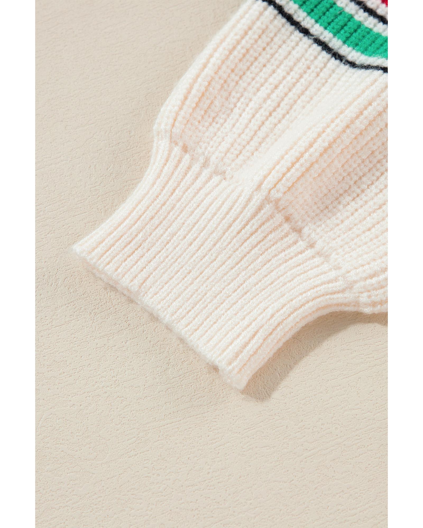 Beige Tinsel Holly Jolly Graphic Classic Sweater – XL