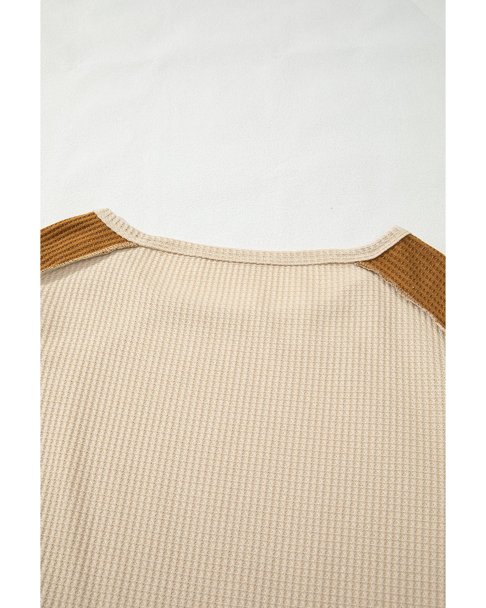 Beige Waffle Leopard Print Colorblock Puff Sleeve Top – M