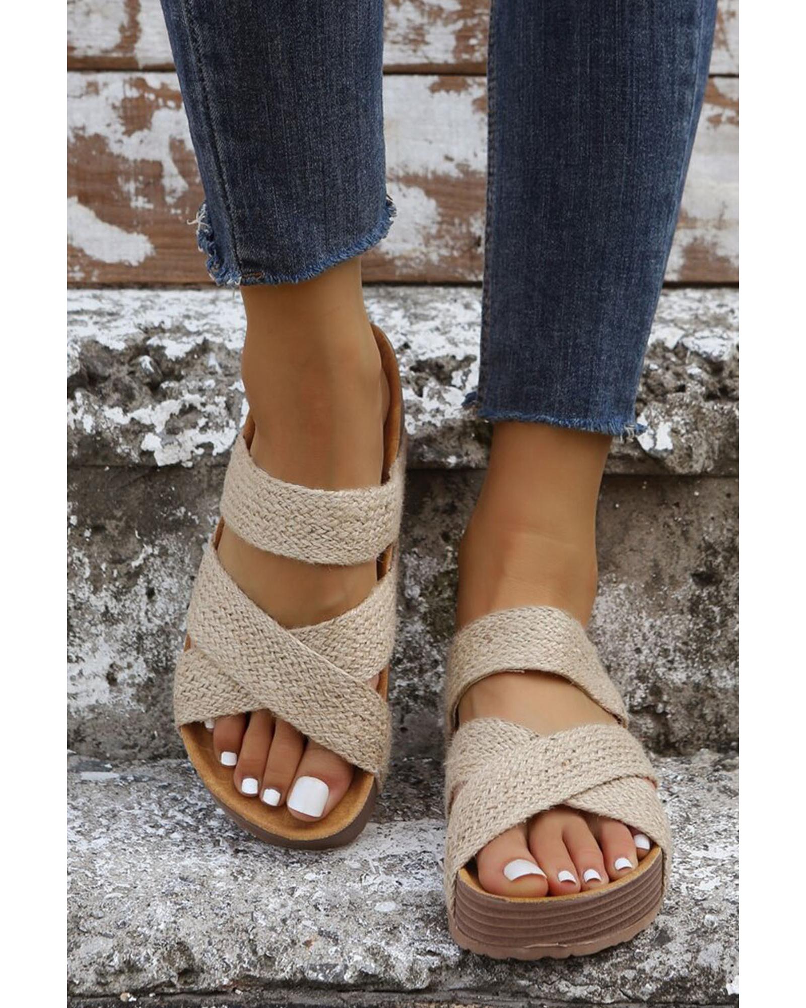 Beige Woven Cross Criss Hollowed Slip-On Slippers – 38 EU