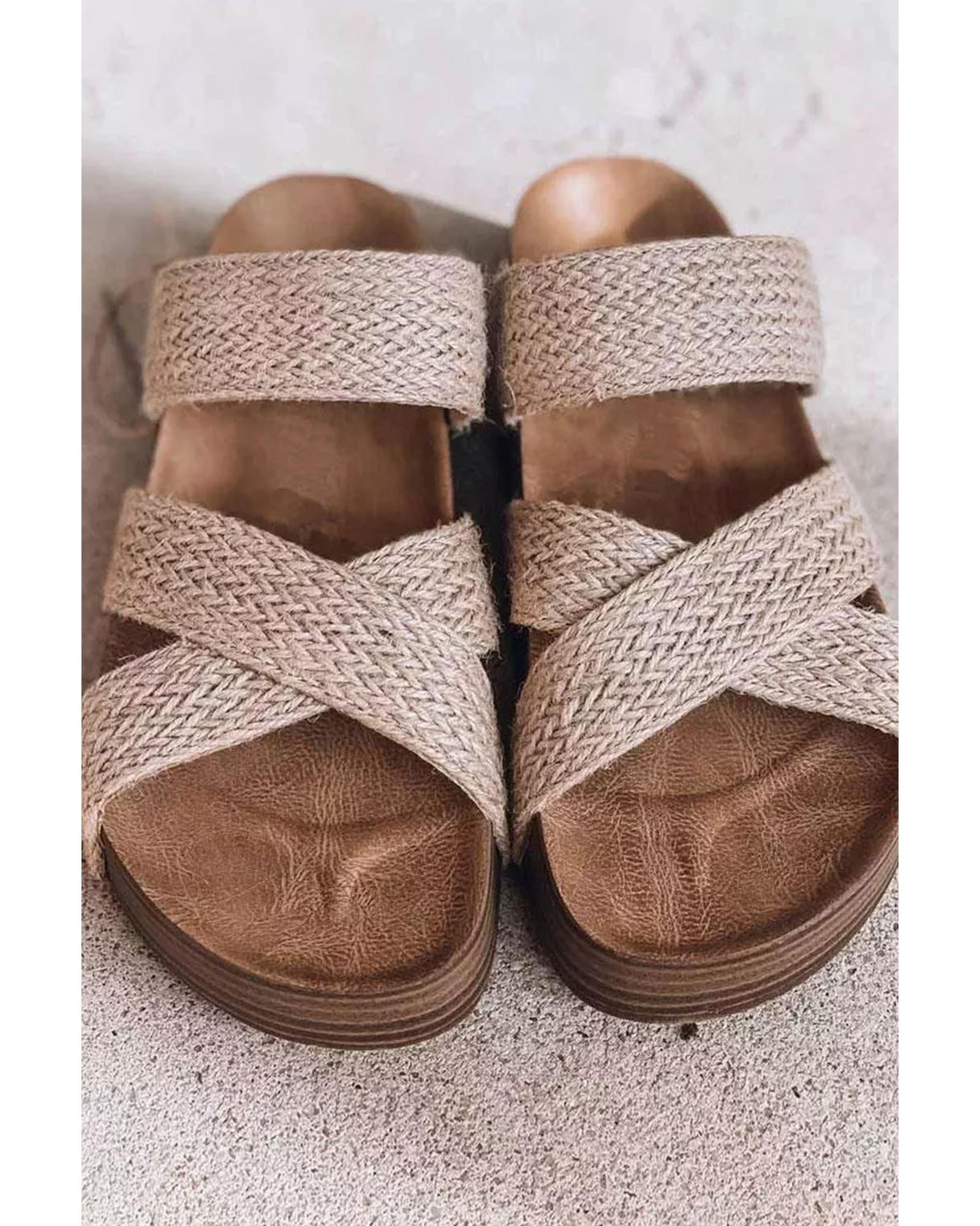 Beige Woven Cross Criss Hollowed Slip-On Slippers - 41 EU