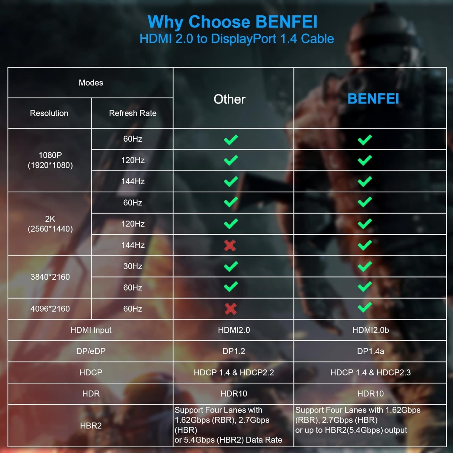 BENFEI 344GY-1M HDMI to DisplayPort Unidirectional 4K Active Cable with USB Powered 1M