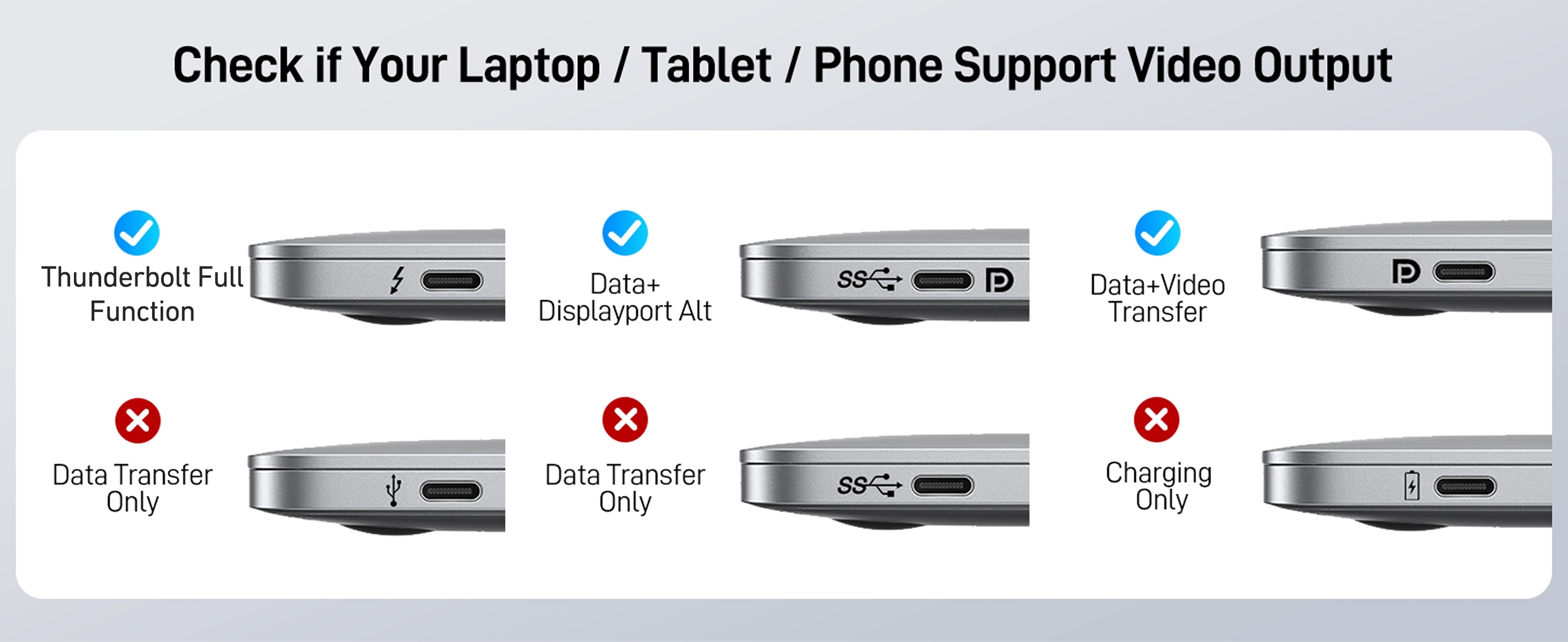 Supports up to 65W USB-C pass-through charging via the Type-C port to keep your laptop powered. Note: This port does not support data or video transfer.