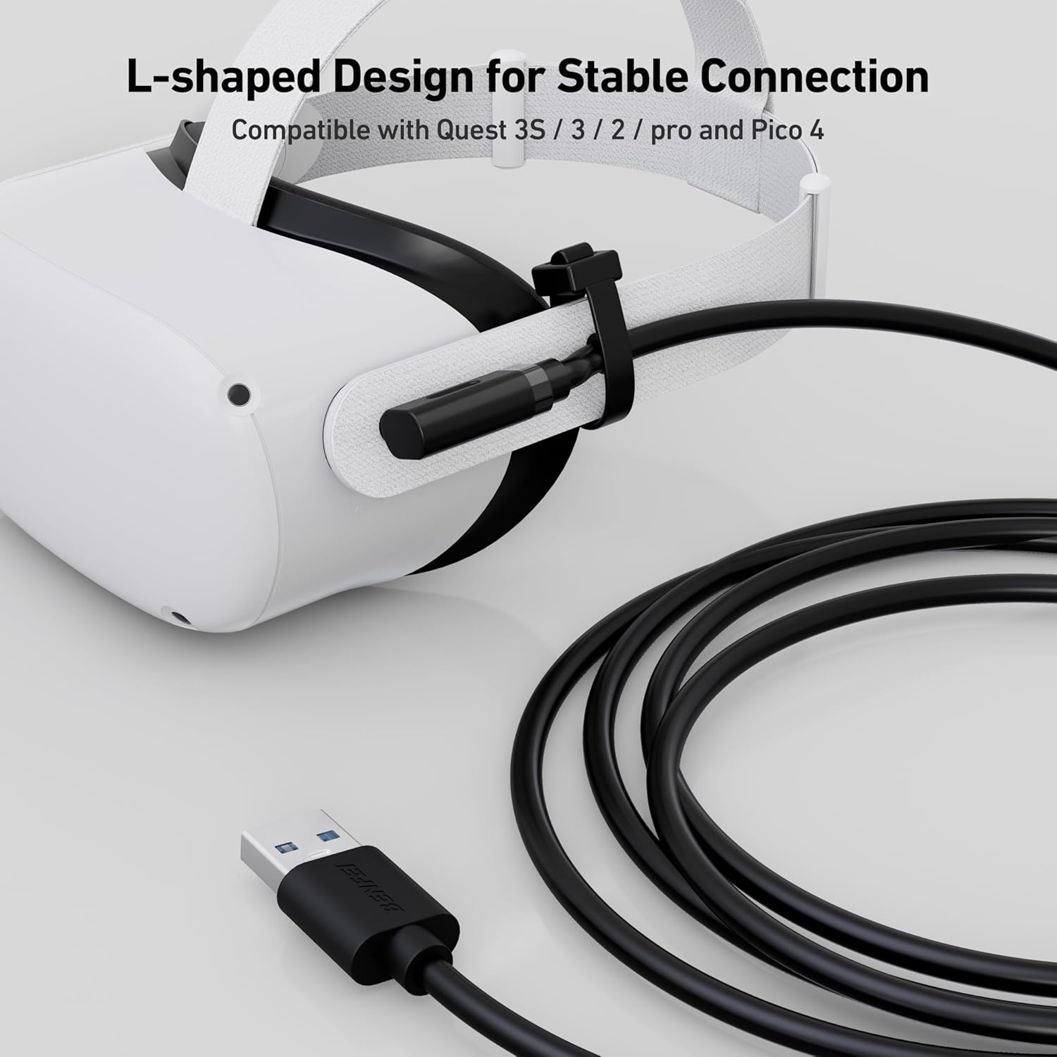 Features an ergonomic L-shaped USB-C connector for improved comfort during extended VR use.