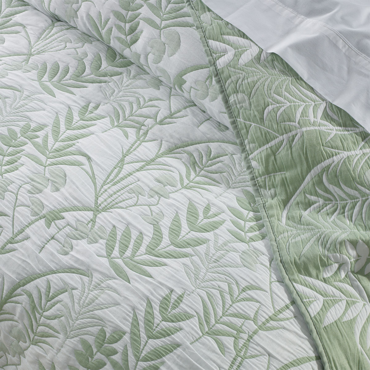 Give your bedroom the lift it needs with this stunning botanical inspired bedspread. The Eden bedspread features a sage jacquard leaf design that contrasts beautifully on a white crisp background. The pillowcases and cushion are finished with a tailored edge. Add the coordinate european pillowcases and cushion to complete the look.