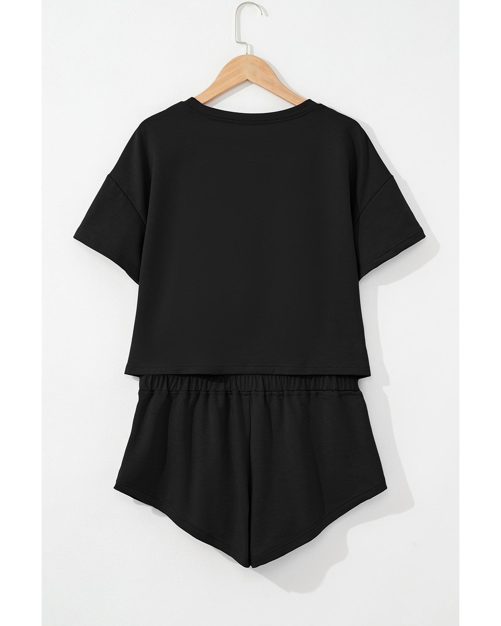 Black 2pcs Cropped Tee and Ruffle High Waist Skort Set – XL