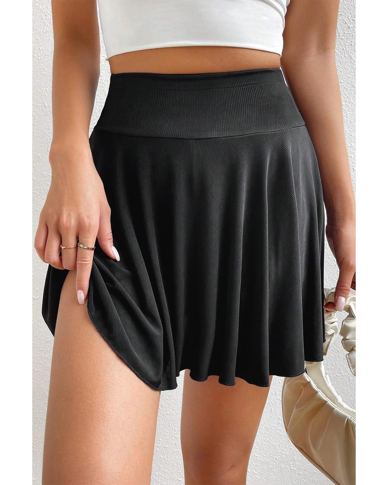 Black A-line Draped High Waist Phone Pocket Lined Skort – XL