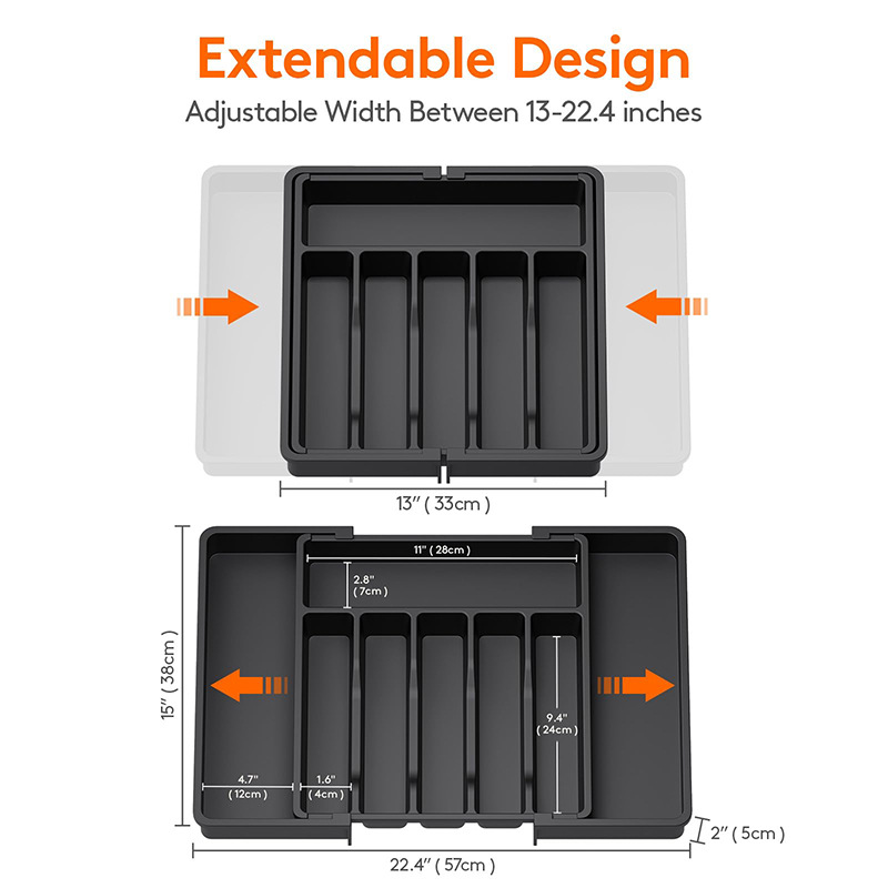 • Adjustable width ranging from 13 inches (33cm) to 22.4 inches (57cm) for a perfect fit in any drawer.