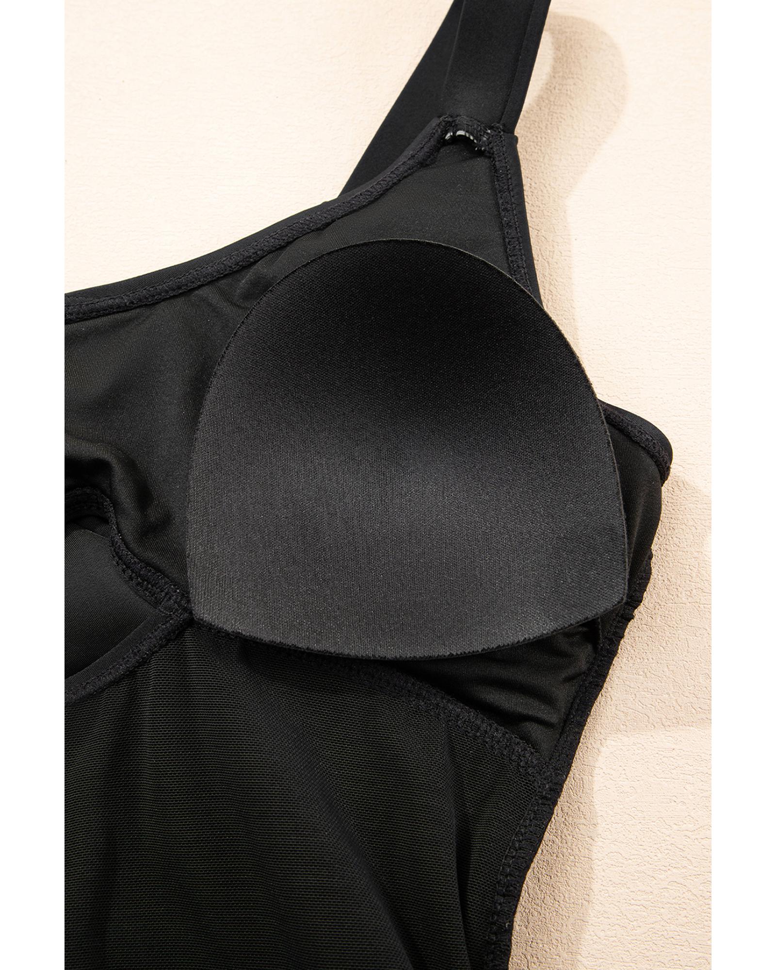 Black Adjustable Straps Cutout Ruched Knot Slit One Piece Swim Dress – L