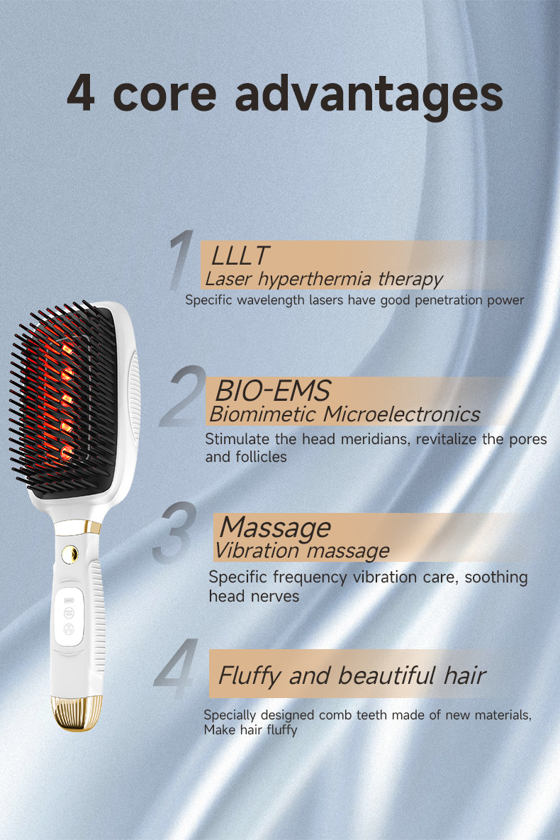 Transform your hair care routine with our innovative Electric Massage Comb, expertly designed to promote a healthier scalp and more vibrant hair. This multi-functional device combines Red Light Therapy (LLLT), BIO-EMS Microcurrent, and soothing Vibration Massage to address various scalp concerns, stimulate follicles, and enhance overall hair health. Its ergonomic design and lightweight build make it a pleasure to use daily.