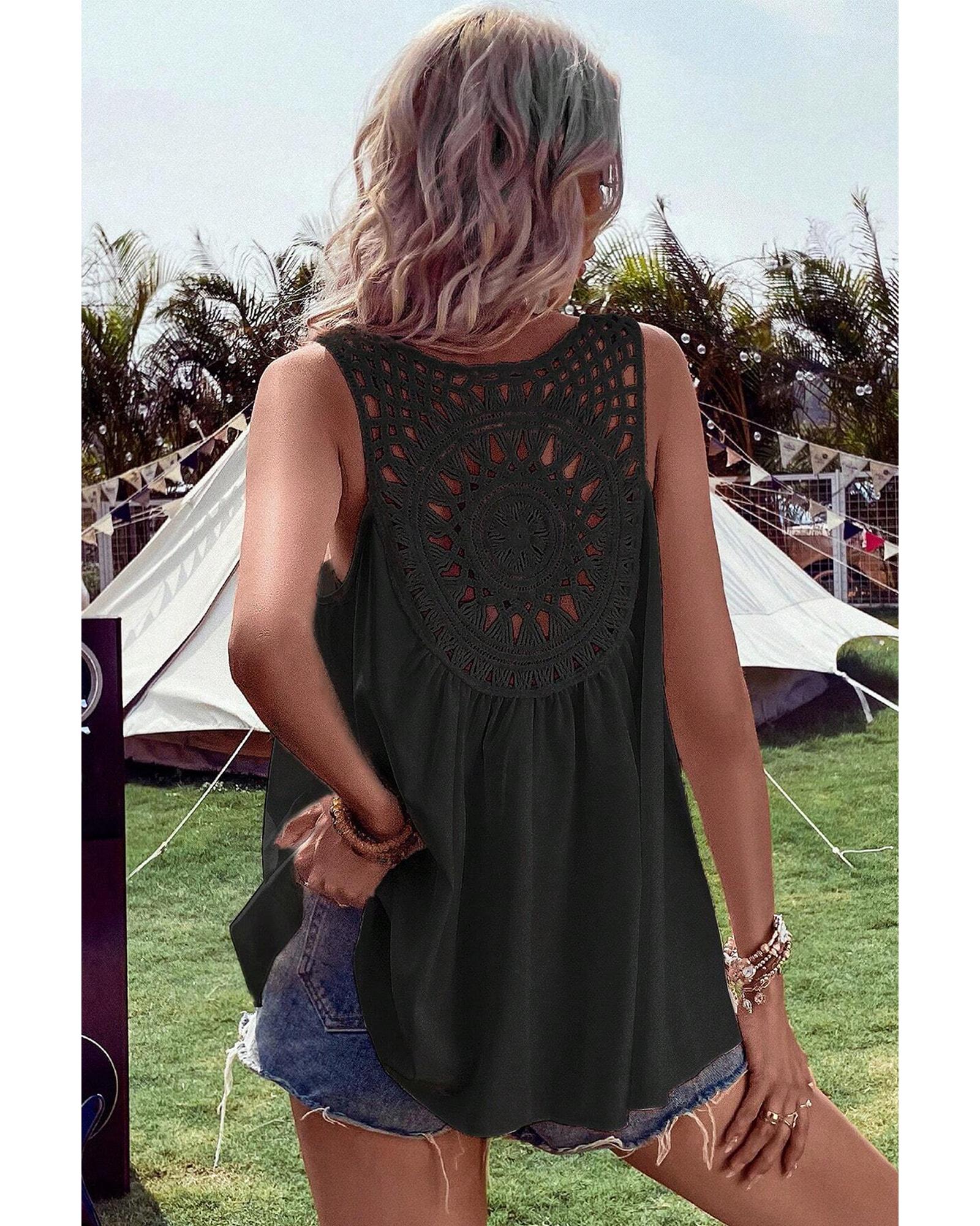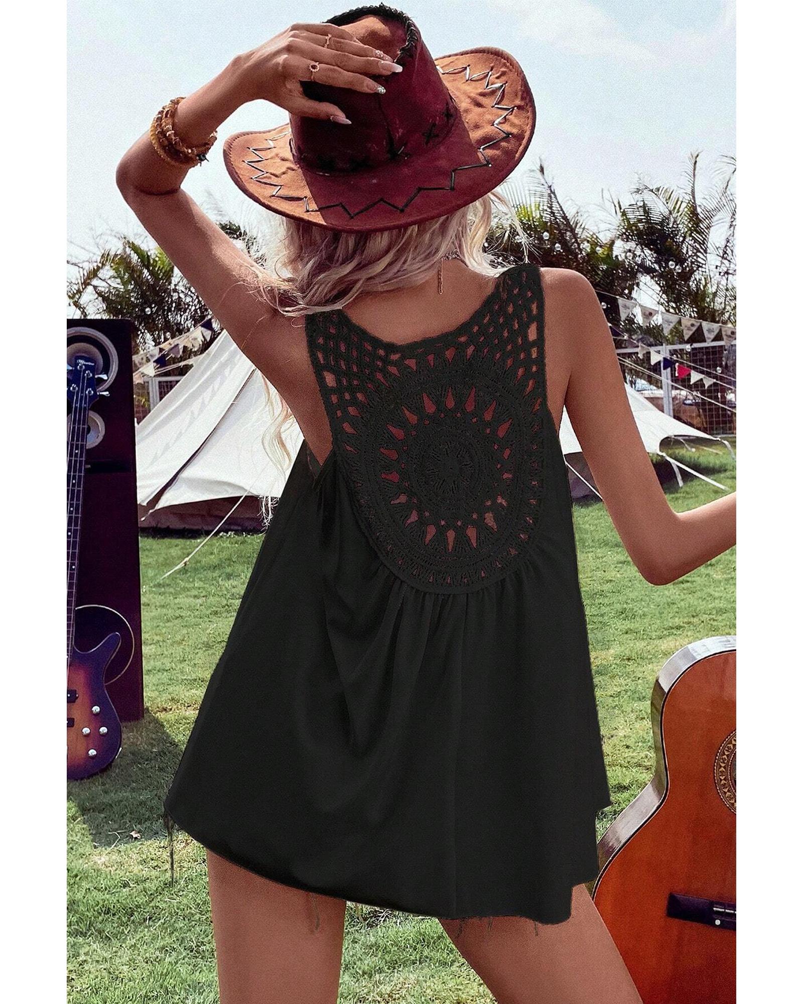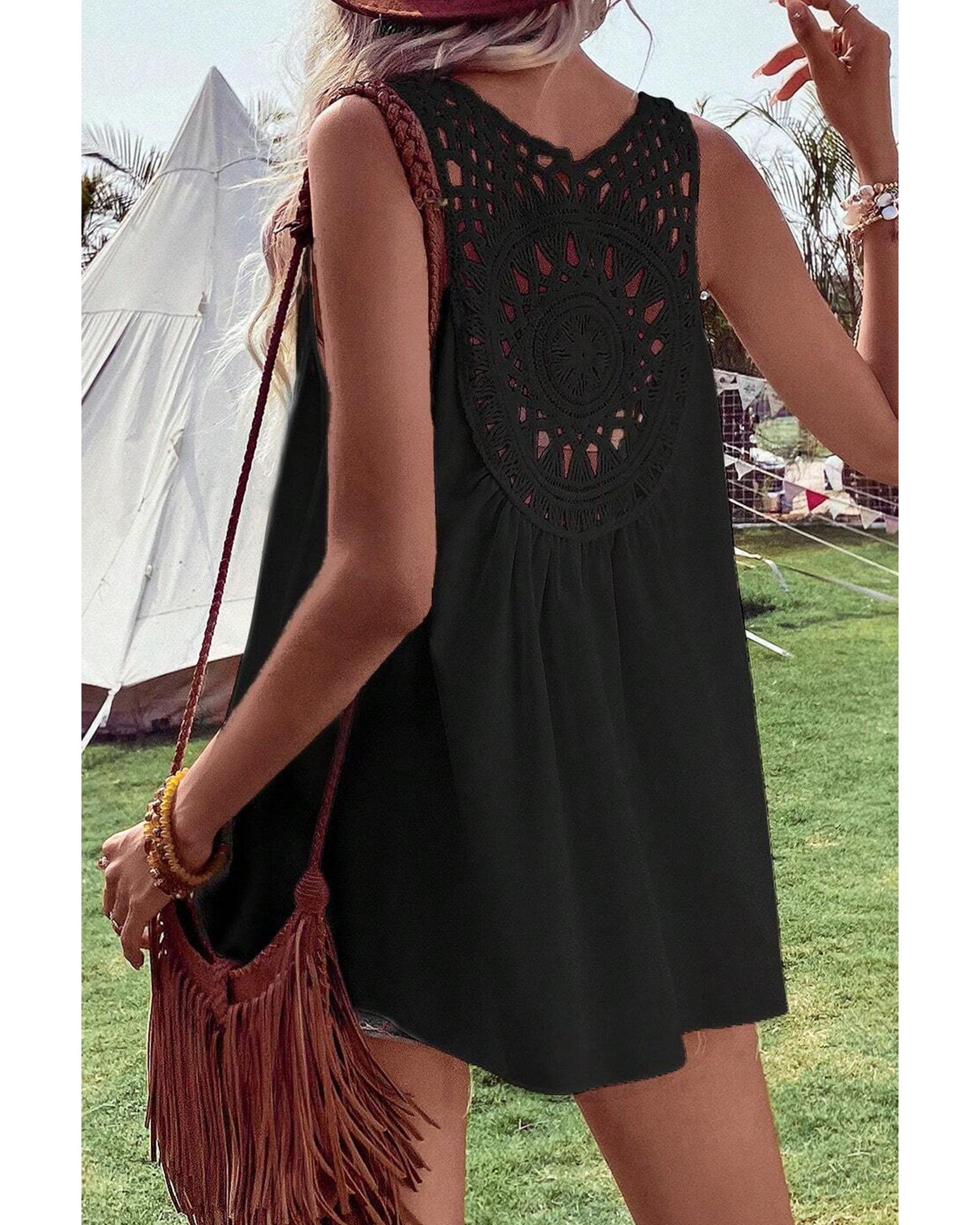 - Black Bohemian Crochet Patchwork Sleeveless Tunic