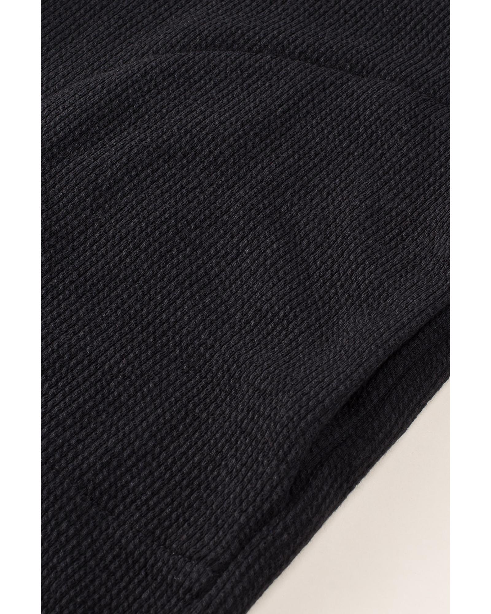 Black Brushed Ribbed Button Split V Neck Long Sleeve Romper – L