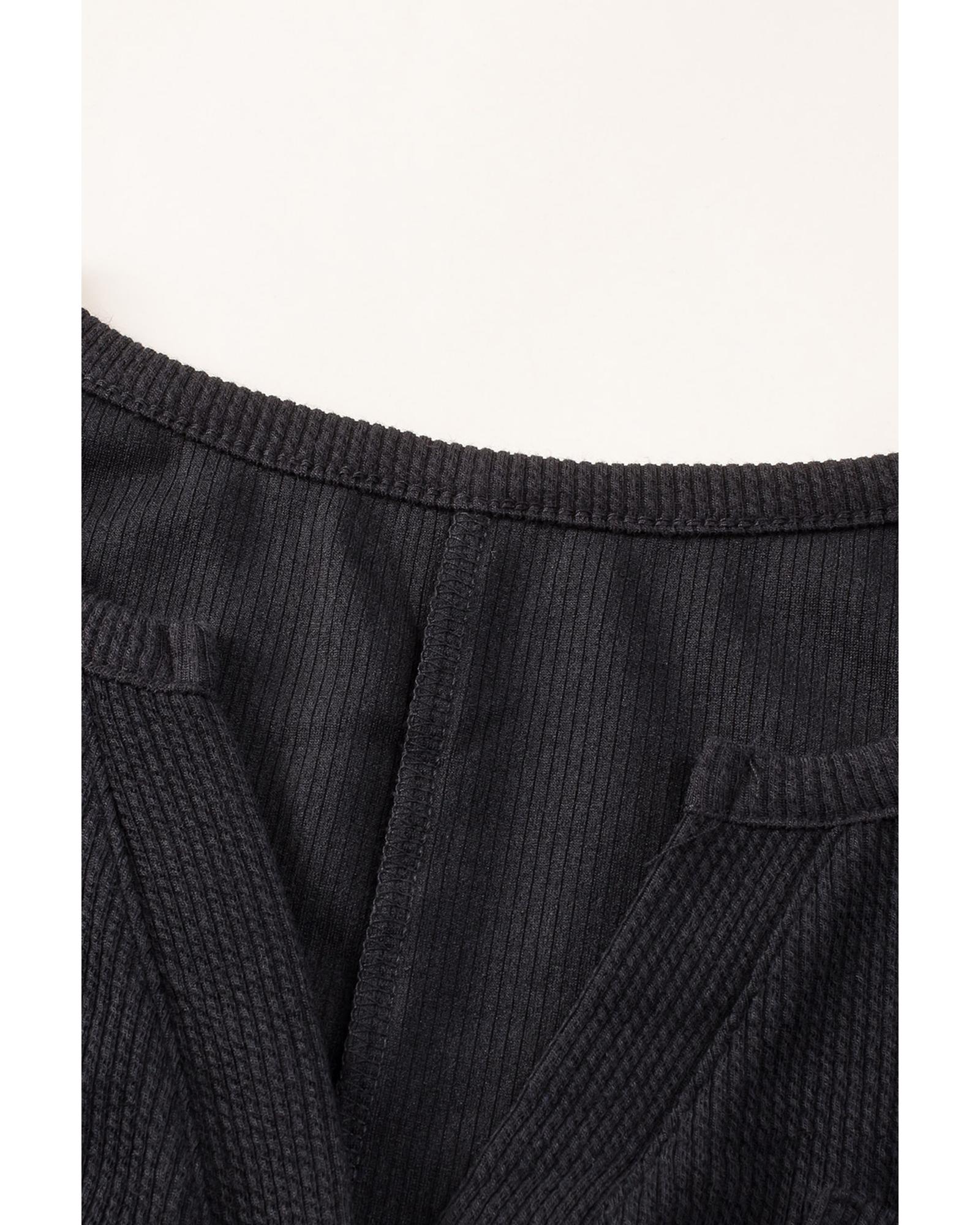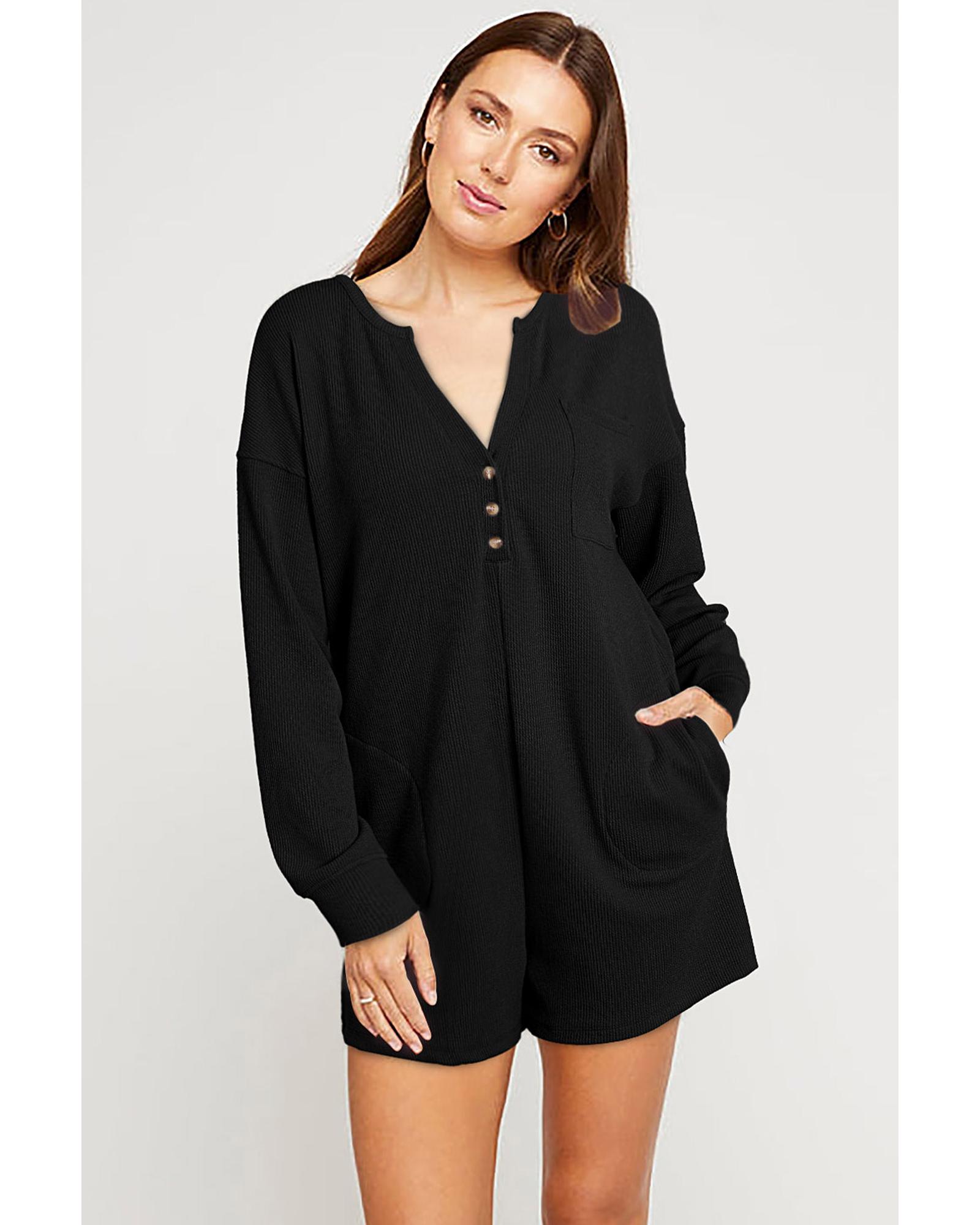 Black Brushed Ribbed Button Split V Neck Long Sleeve Romper - M Original price was: $70.99.Current price is: $37.99.
