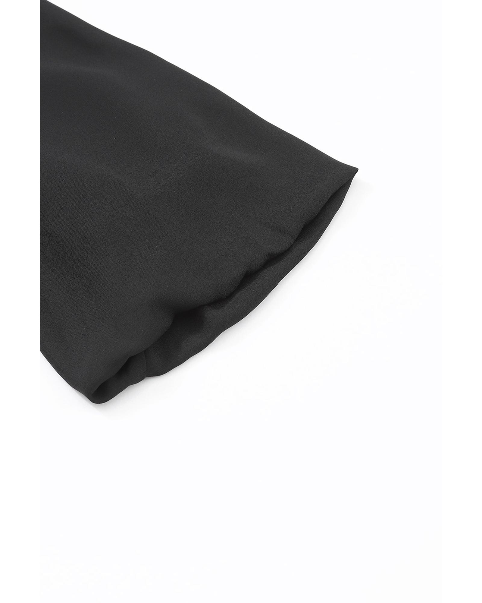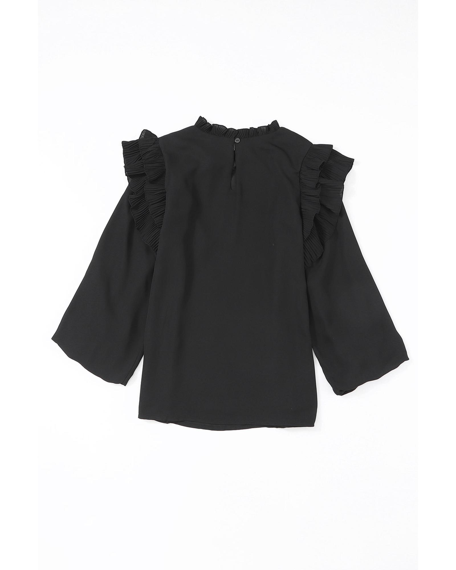 Black Button Keyhole Back Pleated Ruffle Trim Blouse – S