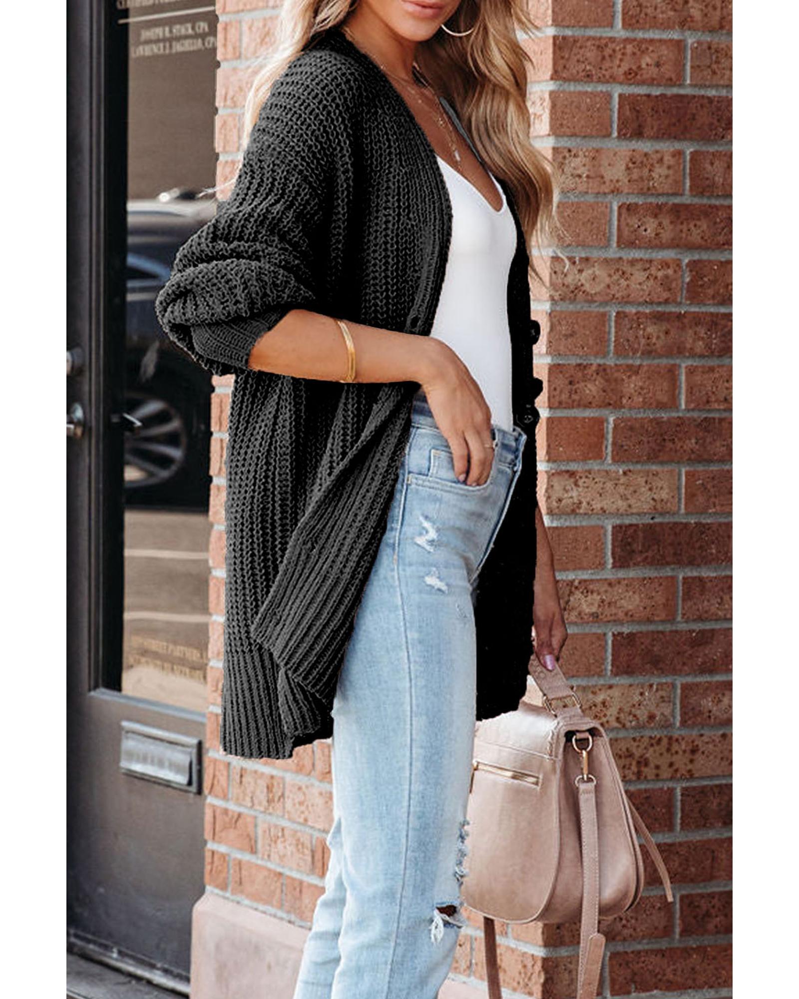 Black Buttoned Front Drop Shoulder Knitted Cardigan – M