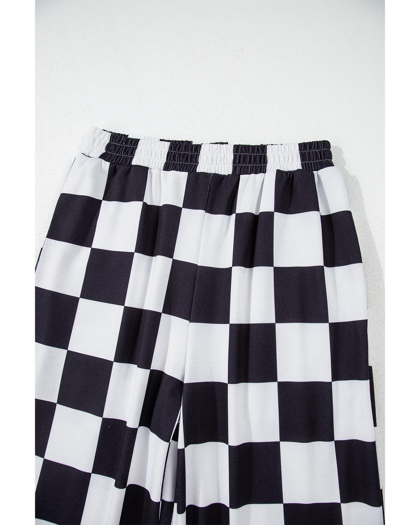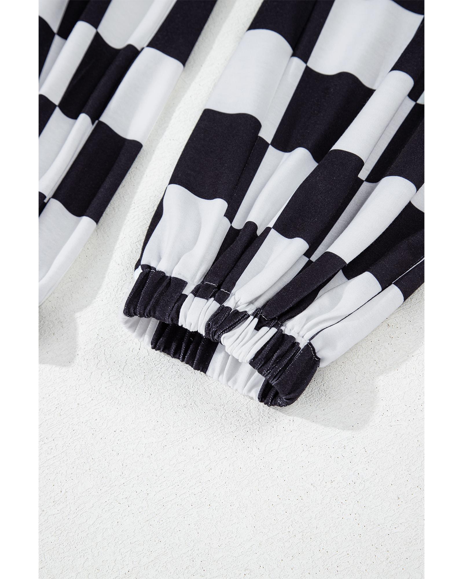 - Black Checkerboard Elastic Waist Pocketed Joggers