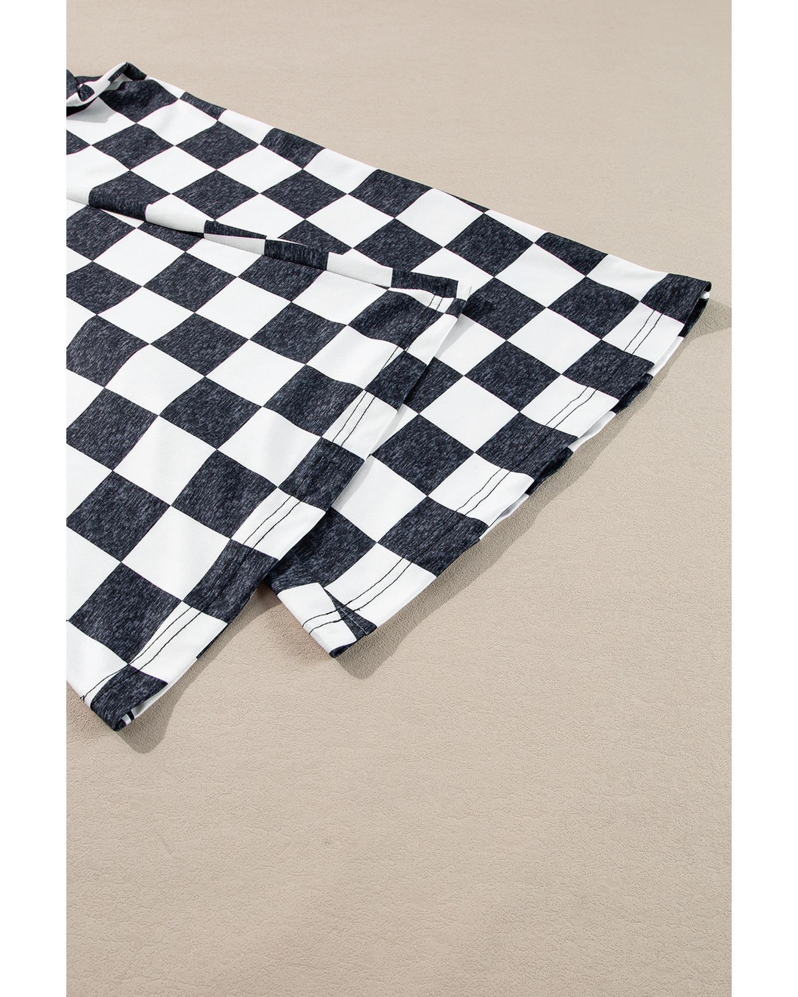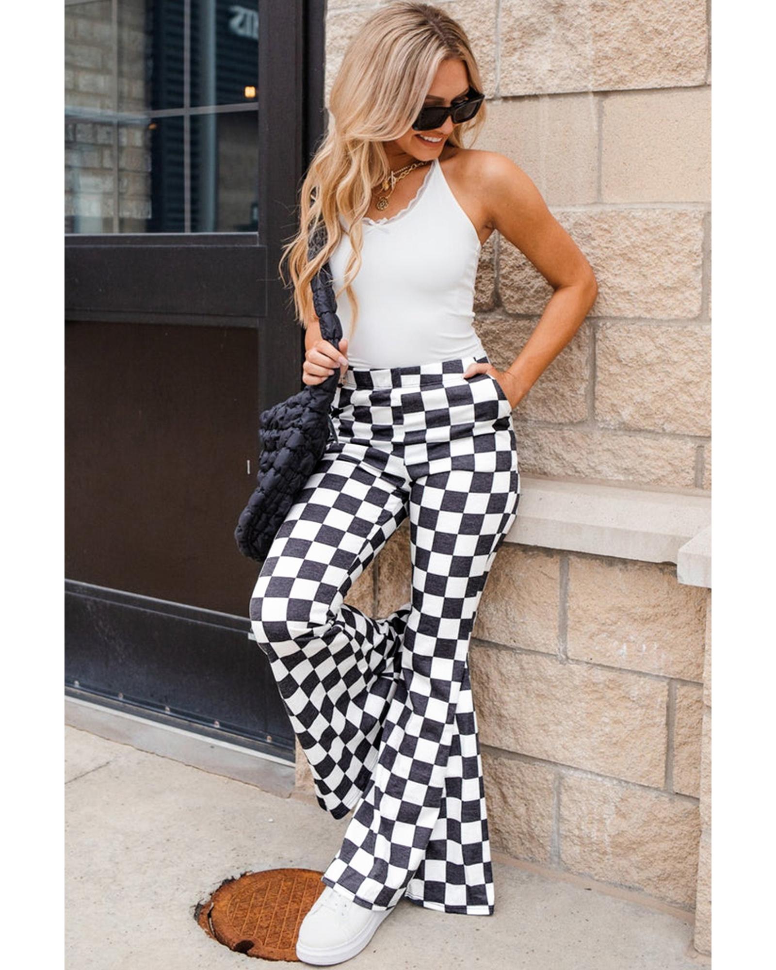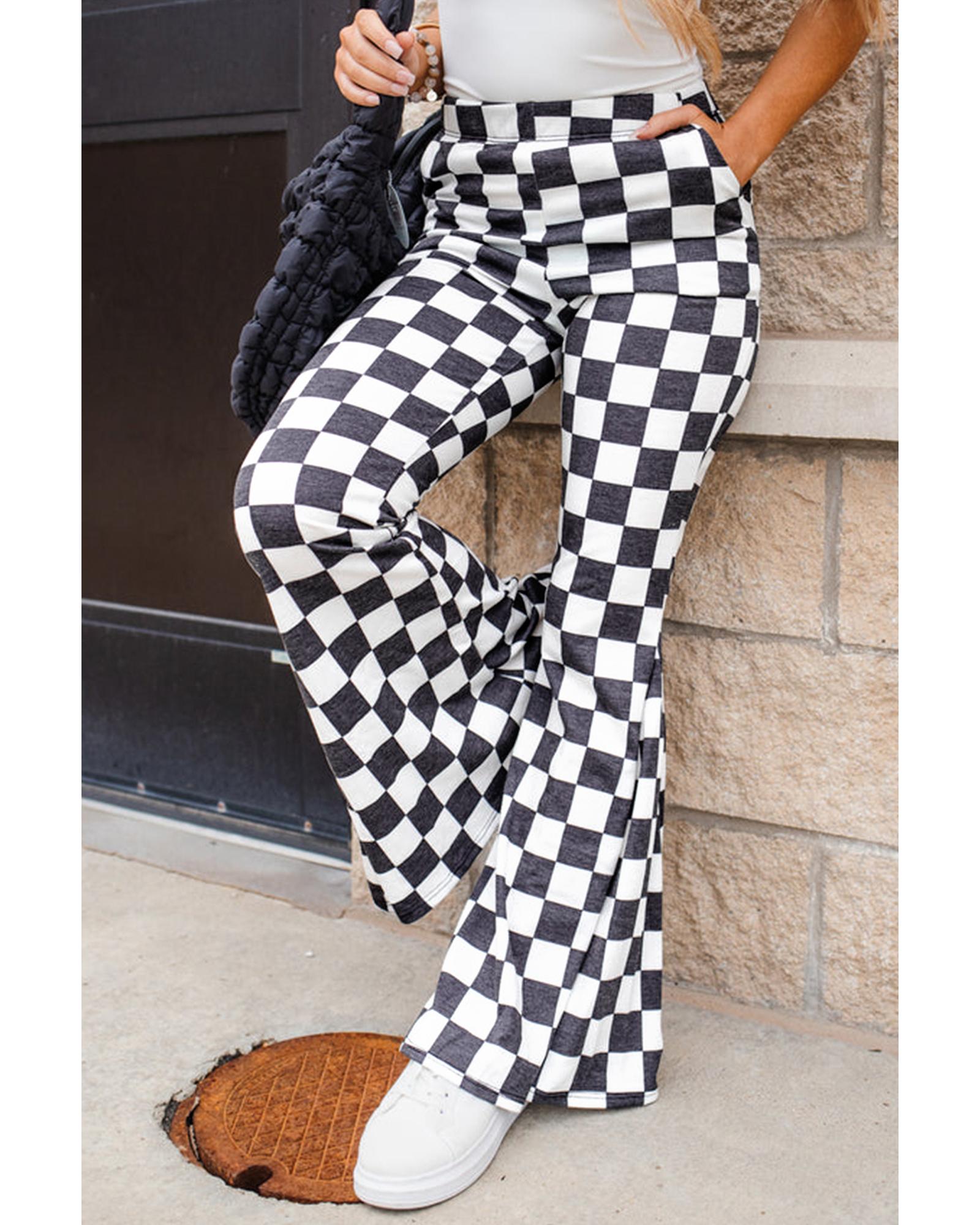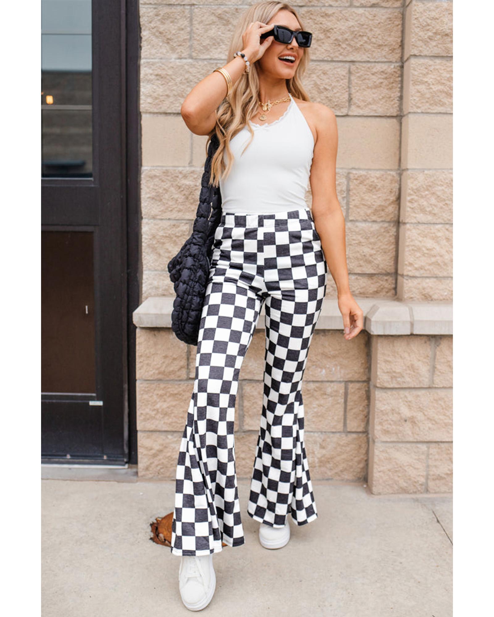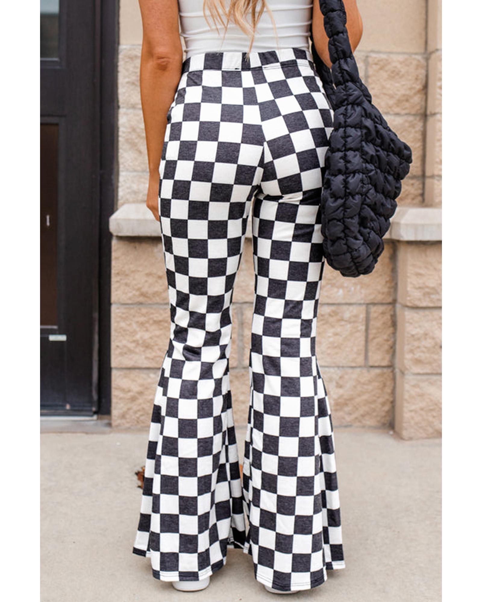 • Black Checkerboard High Rise Casual Flared Pants