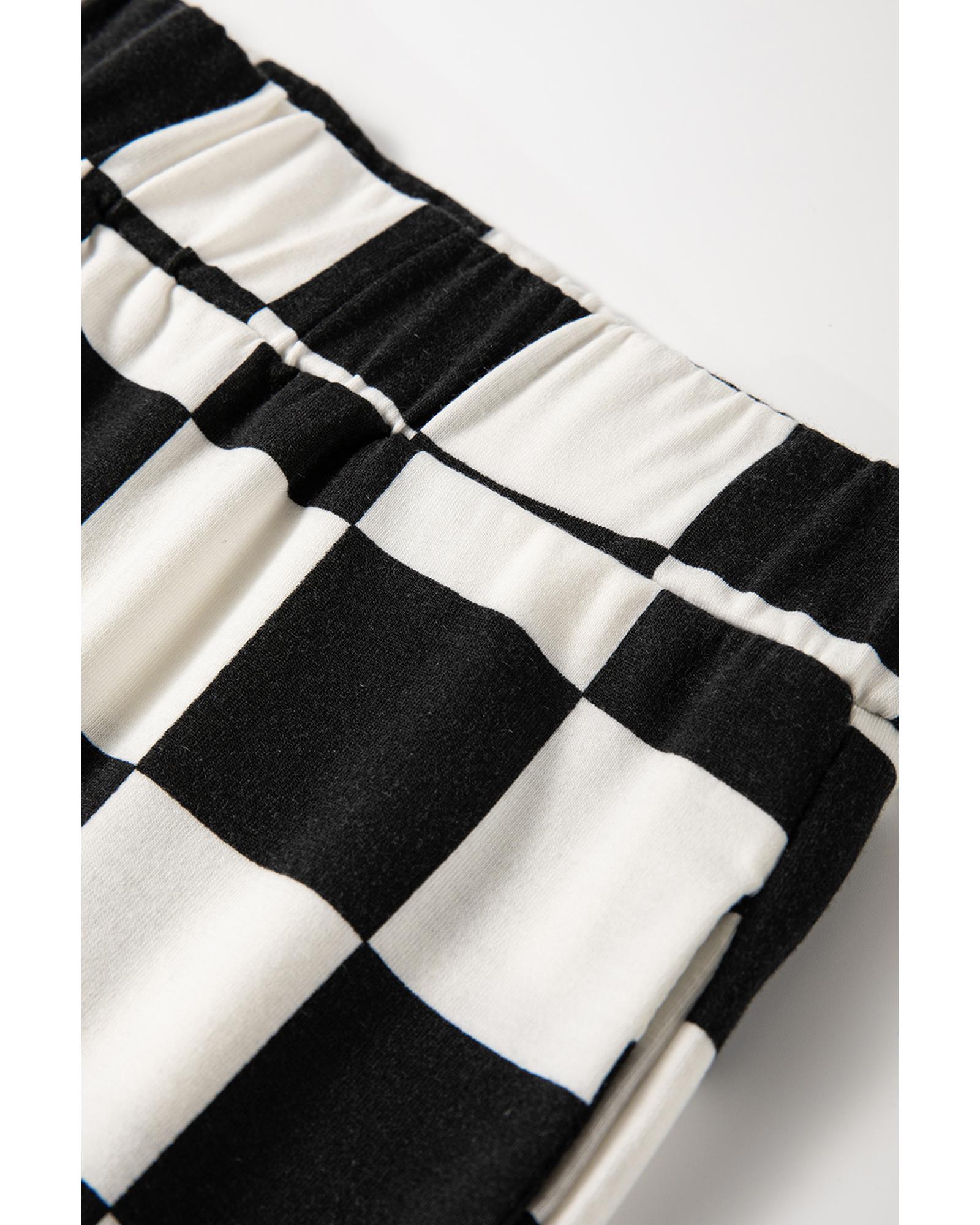 Black Checkerboard Print V Neck Loose Tee and Shorts Lounge Set – XL