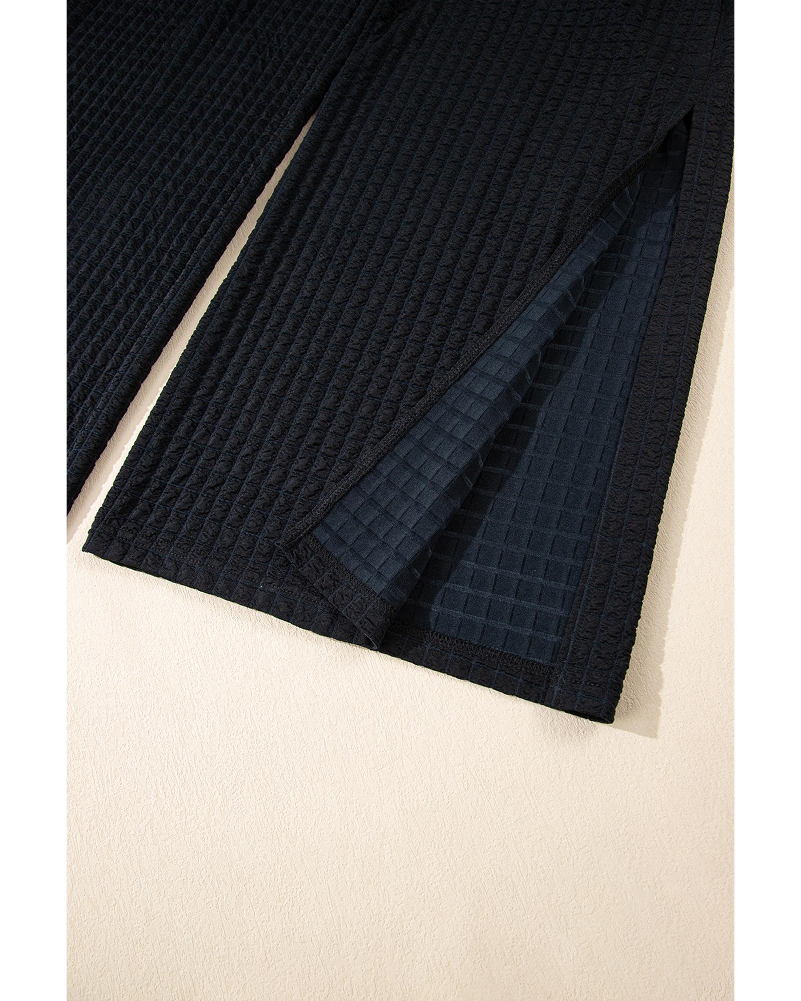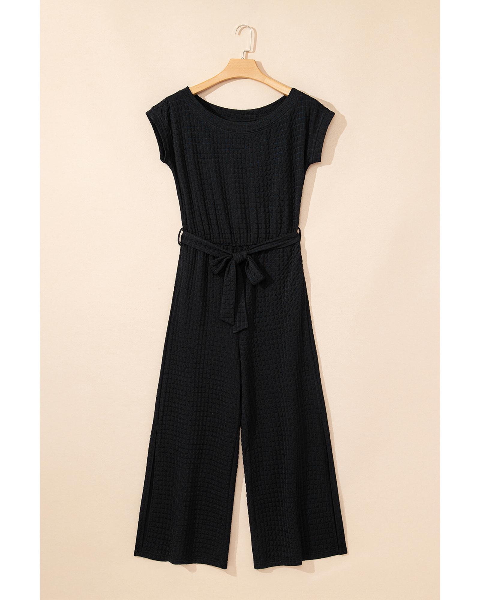 Black Checkered Mesh One Shoulder Short Sleeve Knotted Waist Jumpsuit – L
