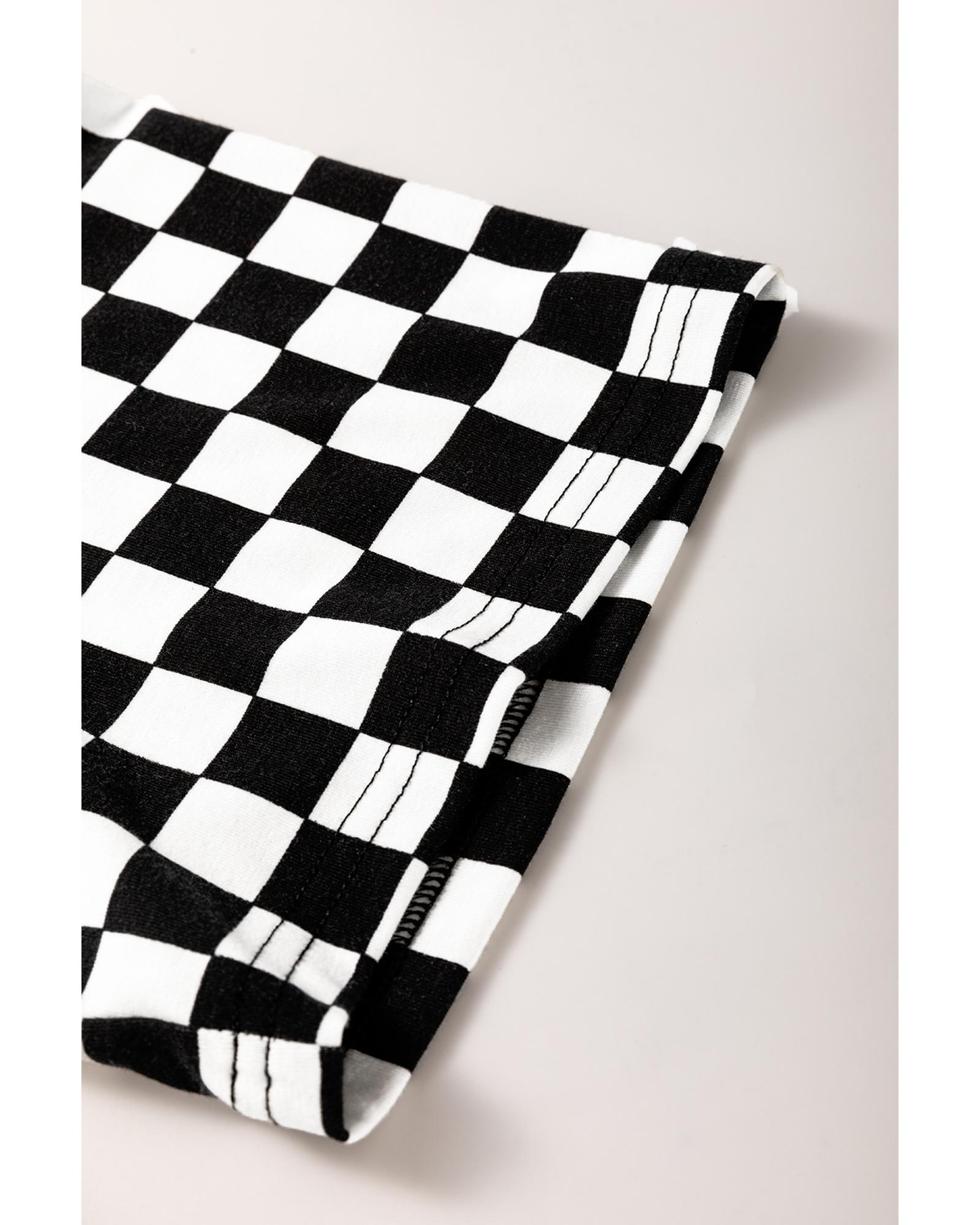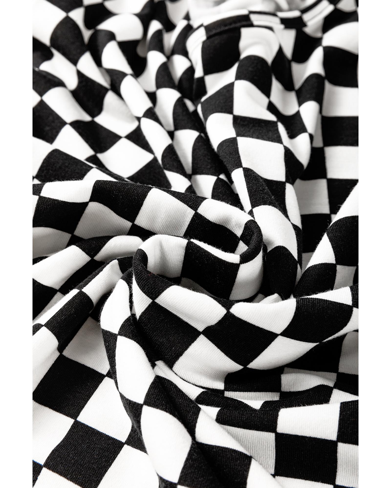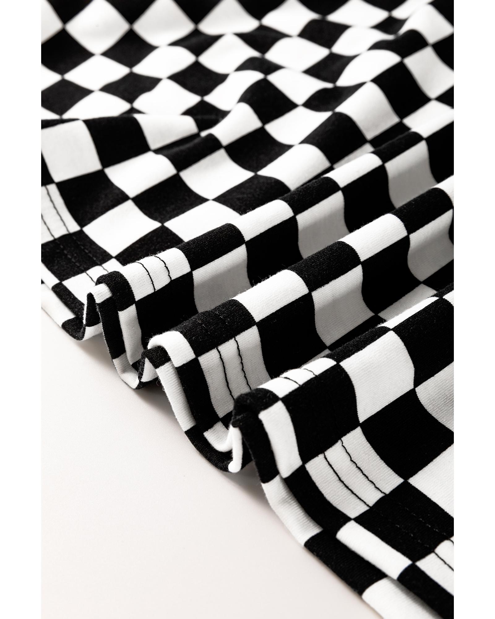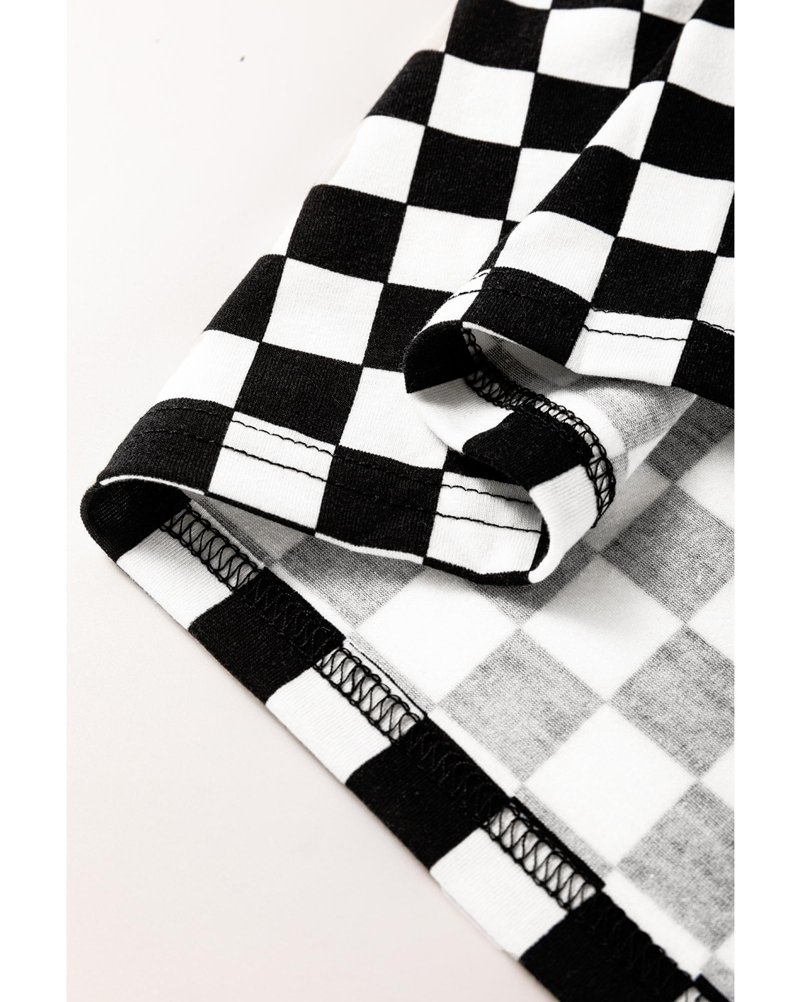 Black Checkered Print Side Slits O Neck Plus Size T Shirt – 1X