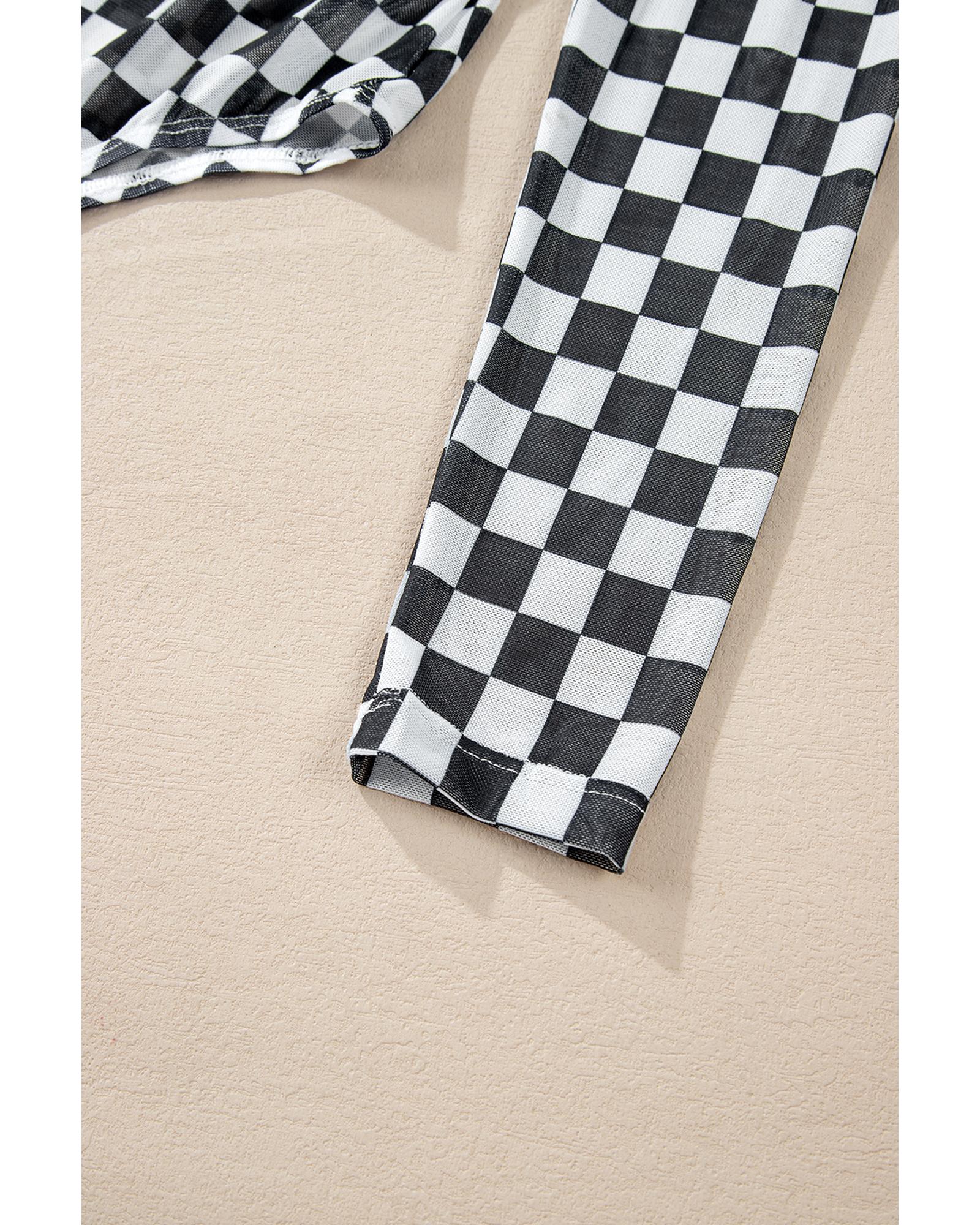 Black Checkered Printed Long Sleeve High Neck Bodysuit – S