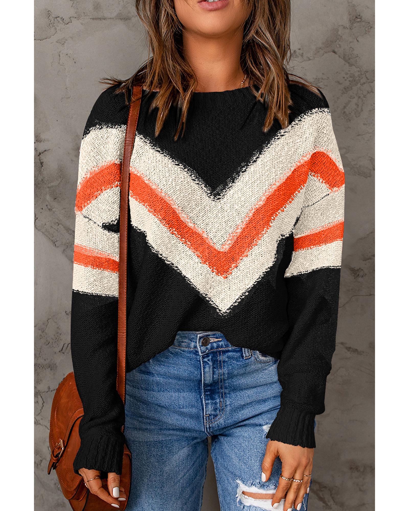 Multicolor Colorblock Textured Drop Shoulder Sweater - 2XL