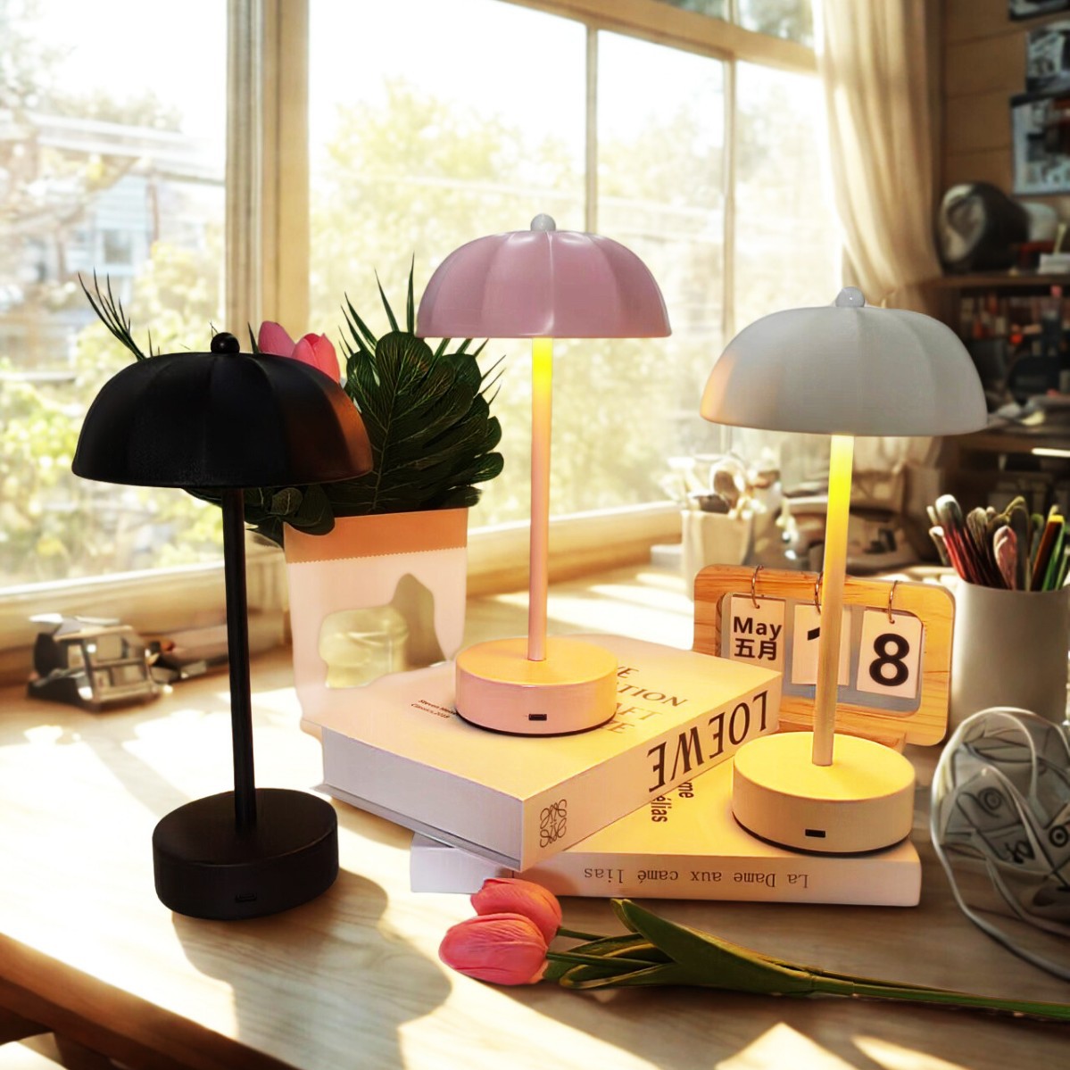 Black Chic Mushroom LED Table Lamp – Rechargeable Cordless Touch Control 3-Color Adjustable Light for Bedroom Living Room Decor