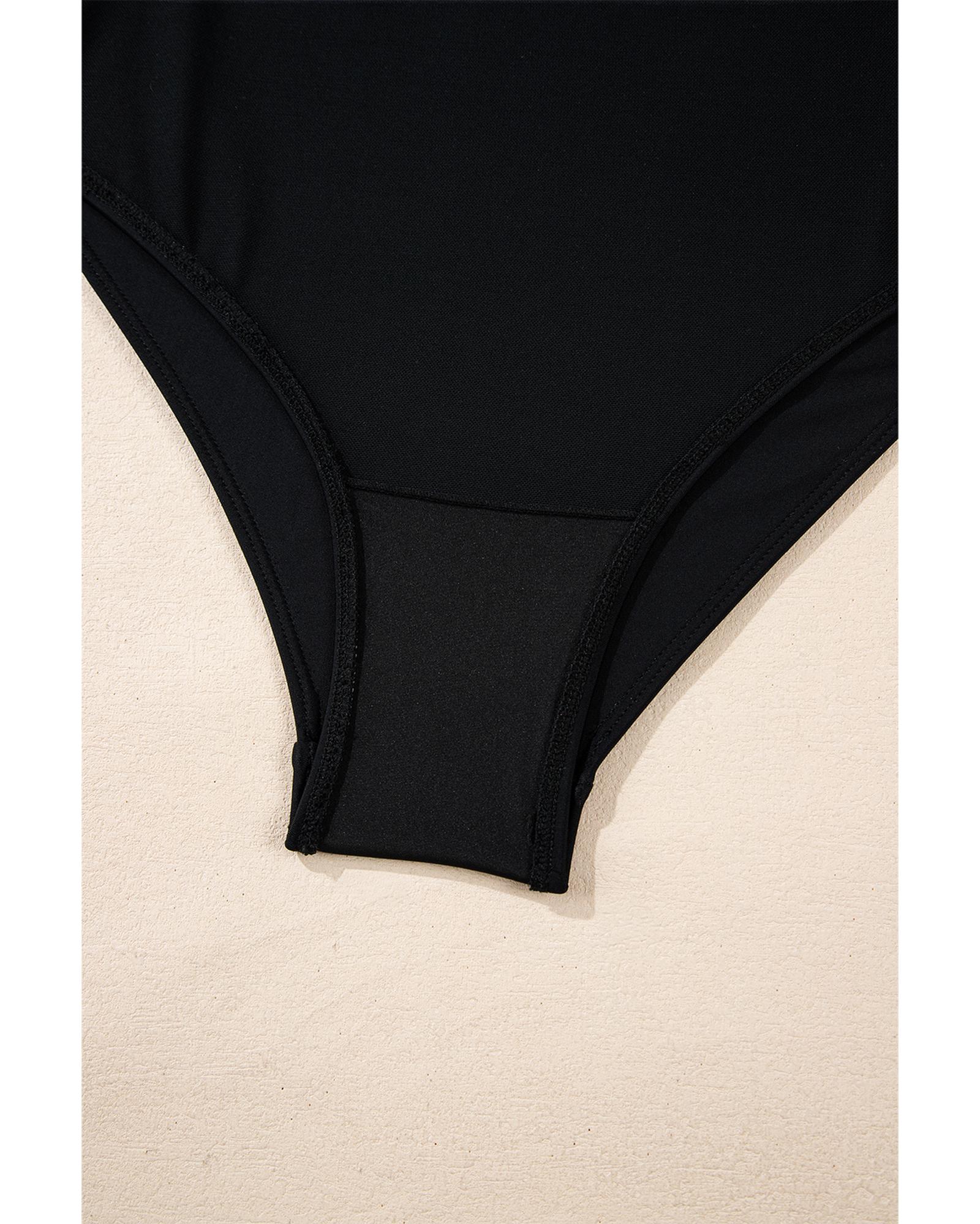 Black Colorblock Edge Belted One Piece Swimsuit – L