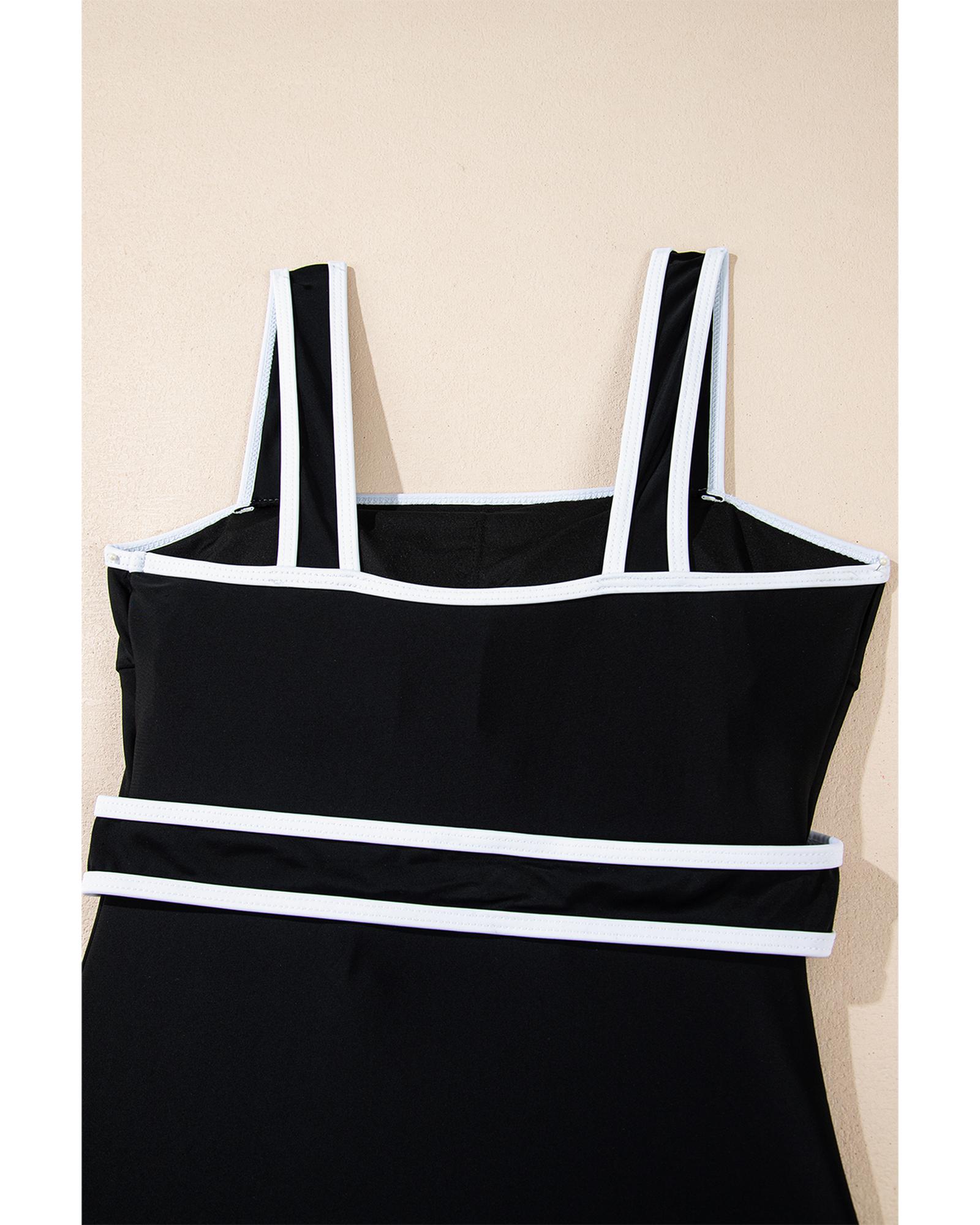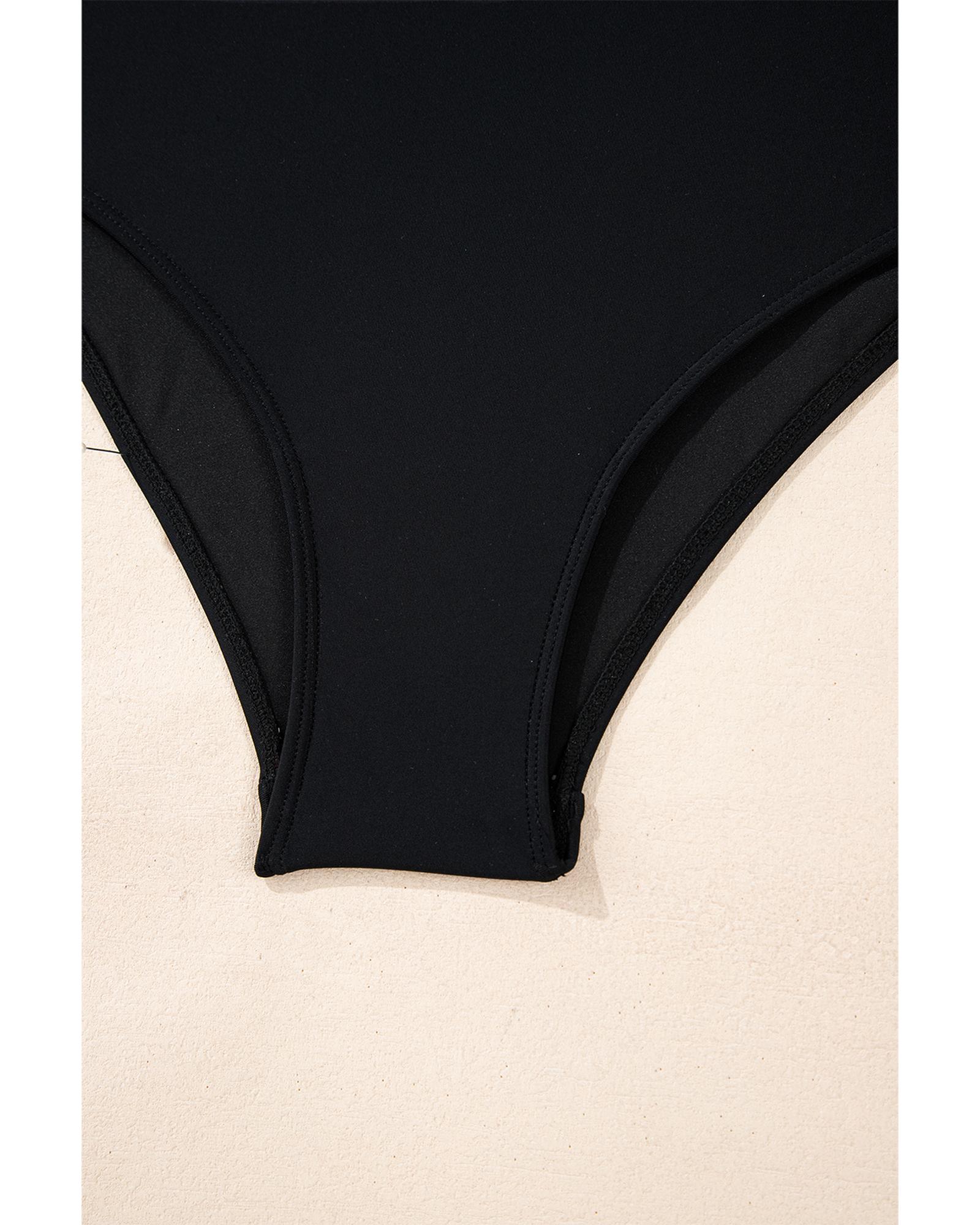 Black Colorblock Edge Belted One Piece Swimsuit – S