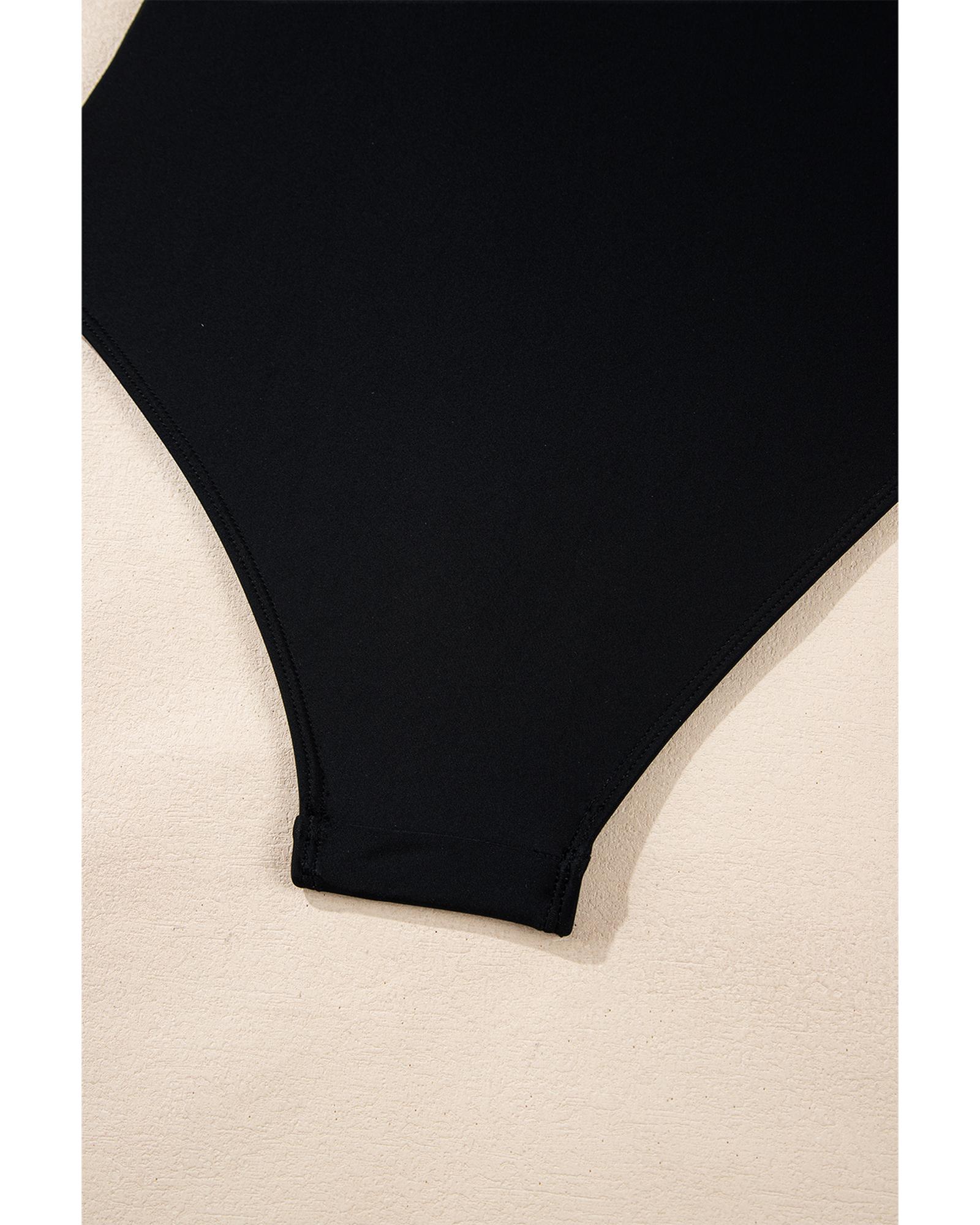 Black Colorblock Edge Belted One Piece Swimsuit – XL