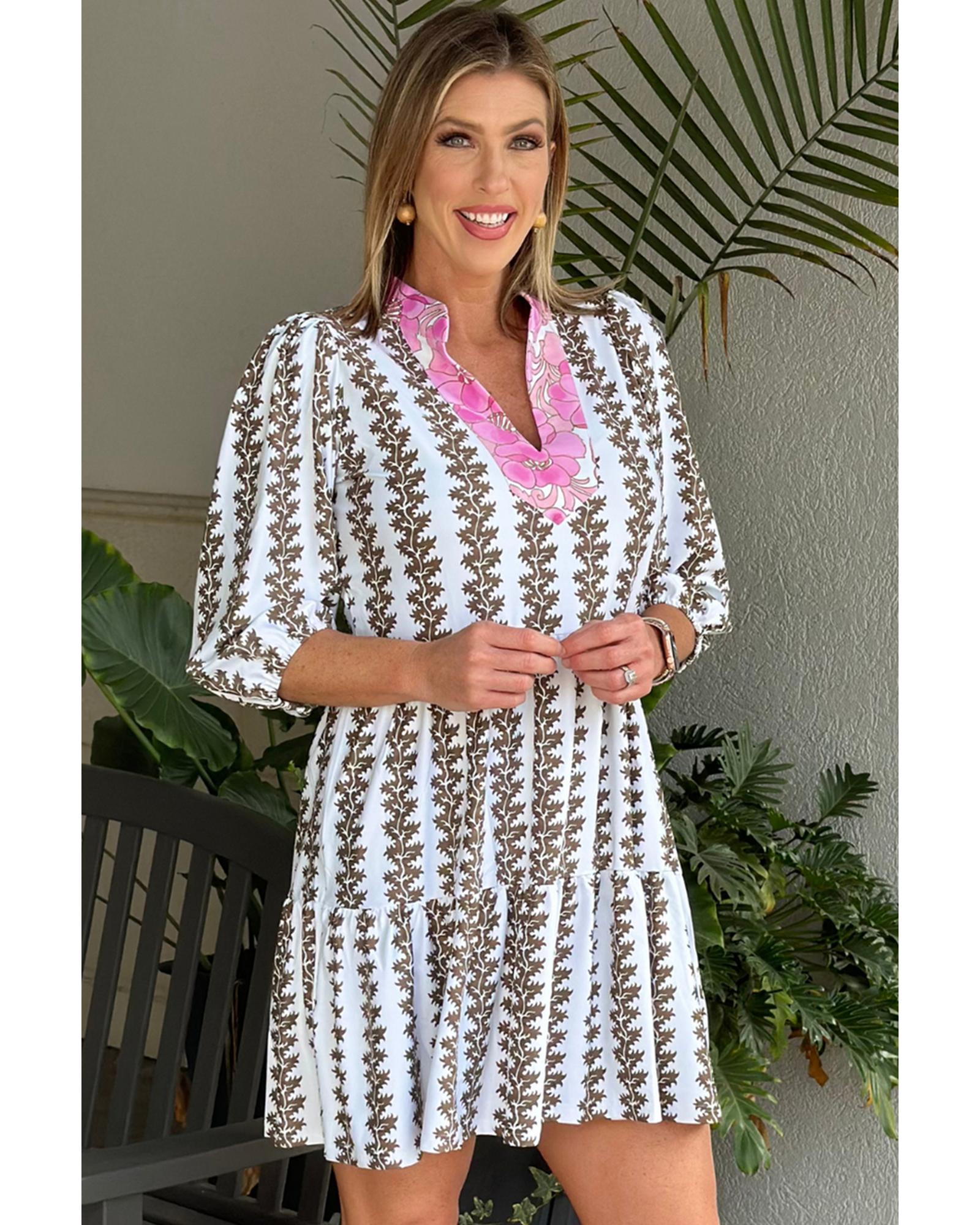 Black Contrast Floral V Neck Printed Bracelet Sleeve Dress – M