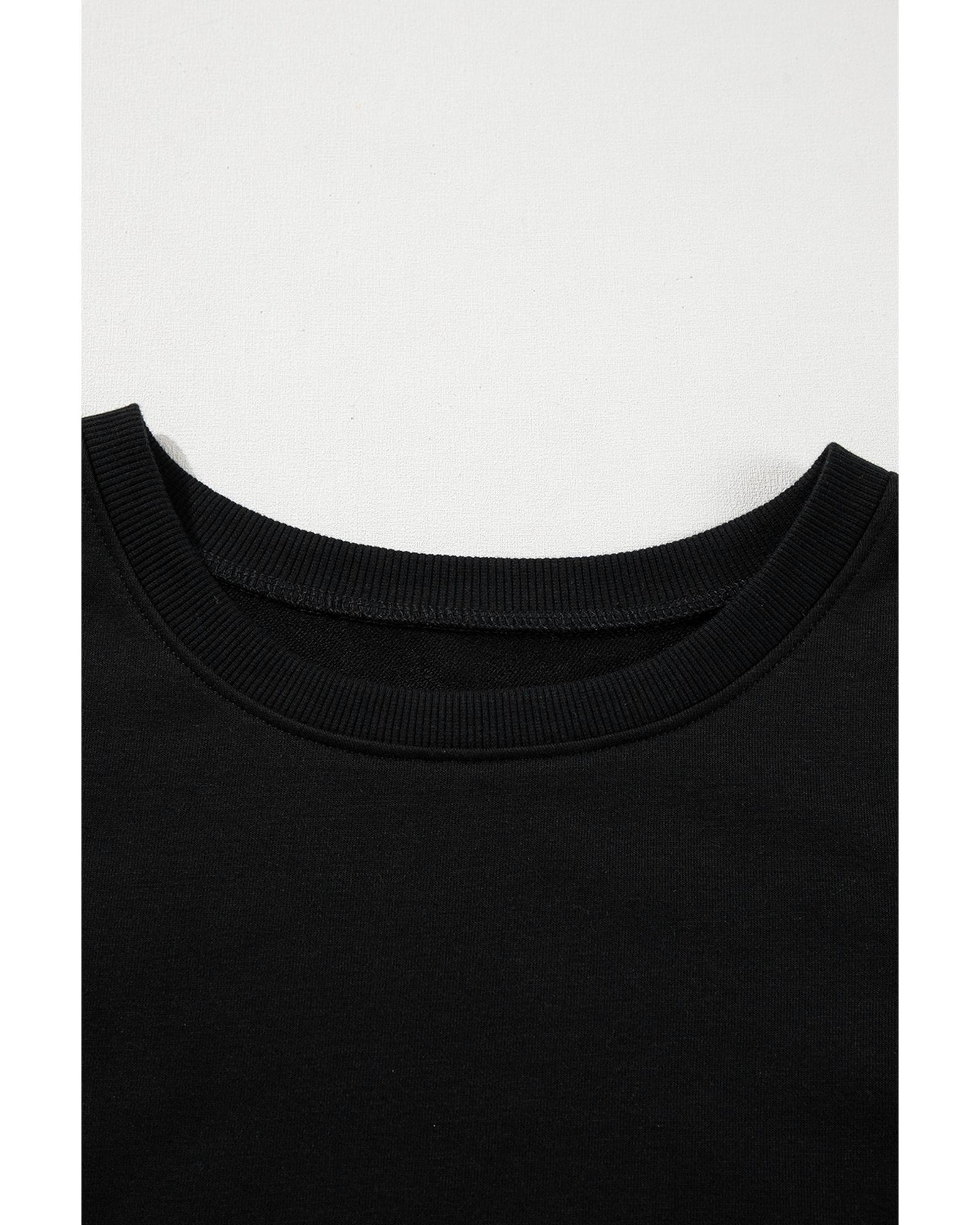 - Black Contrast Stitches Detail Puffy Half Sleeve Blouse