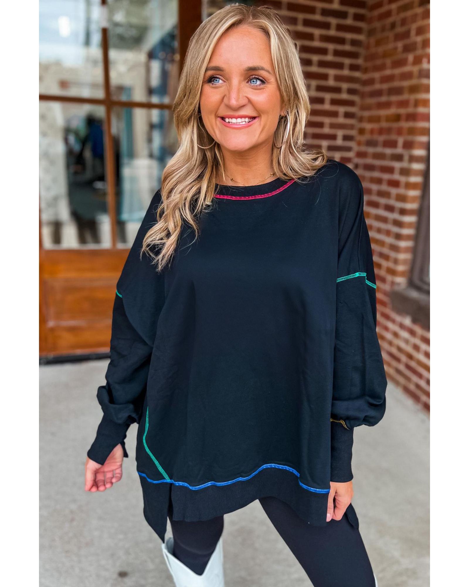 Black Contrast Stitching Split Baggy Sweatshirt – S