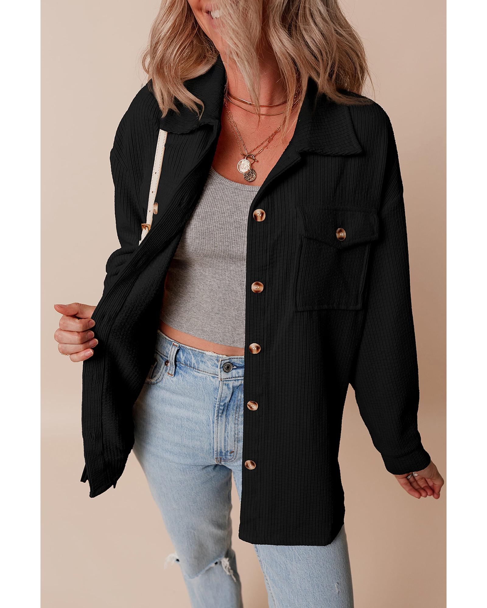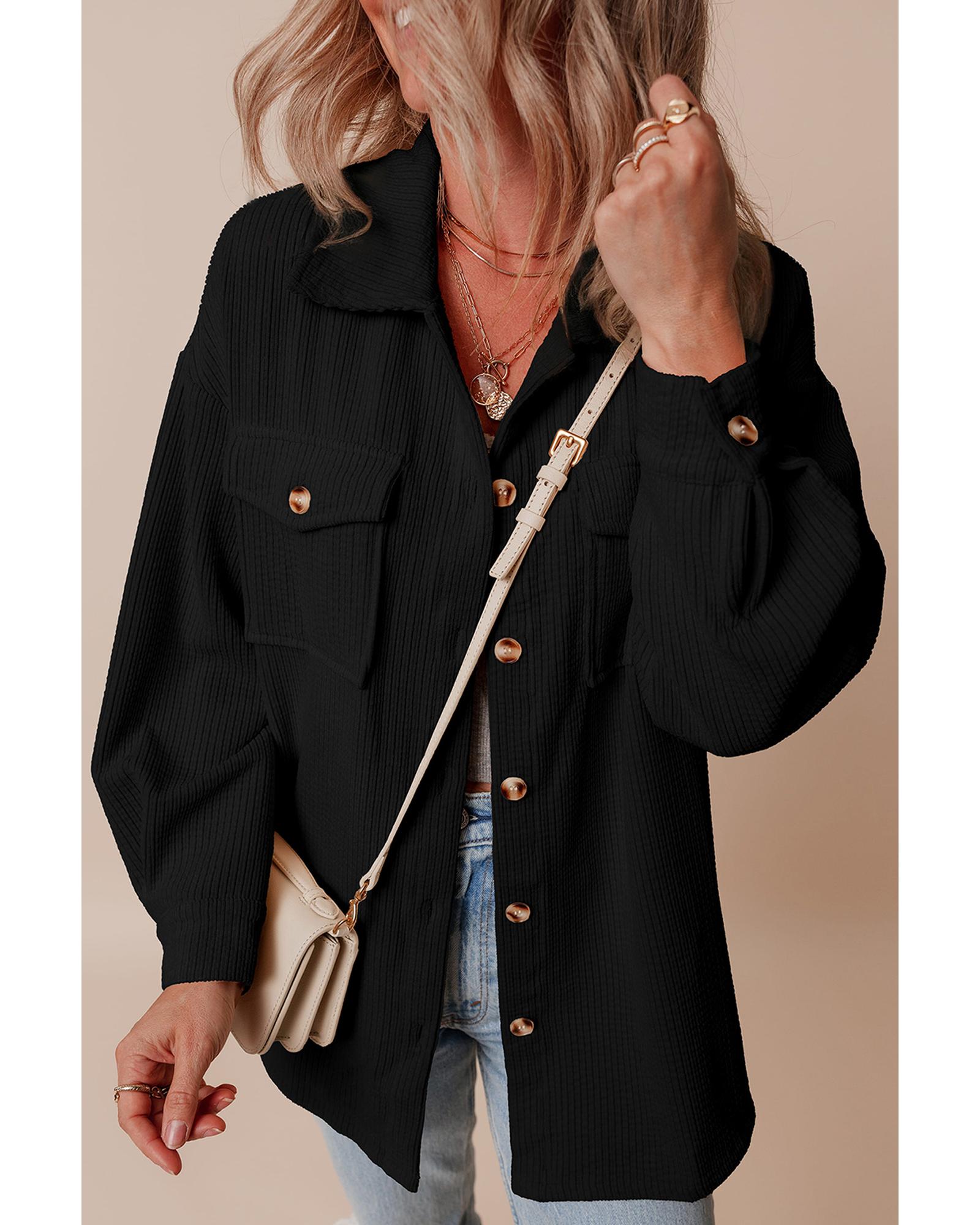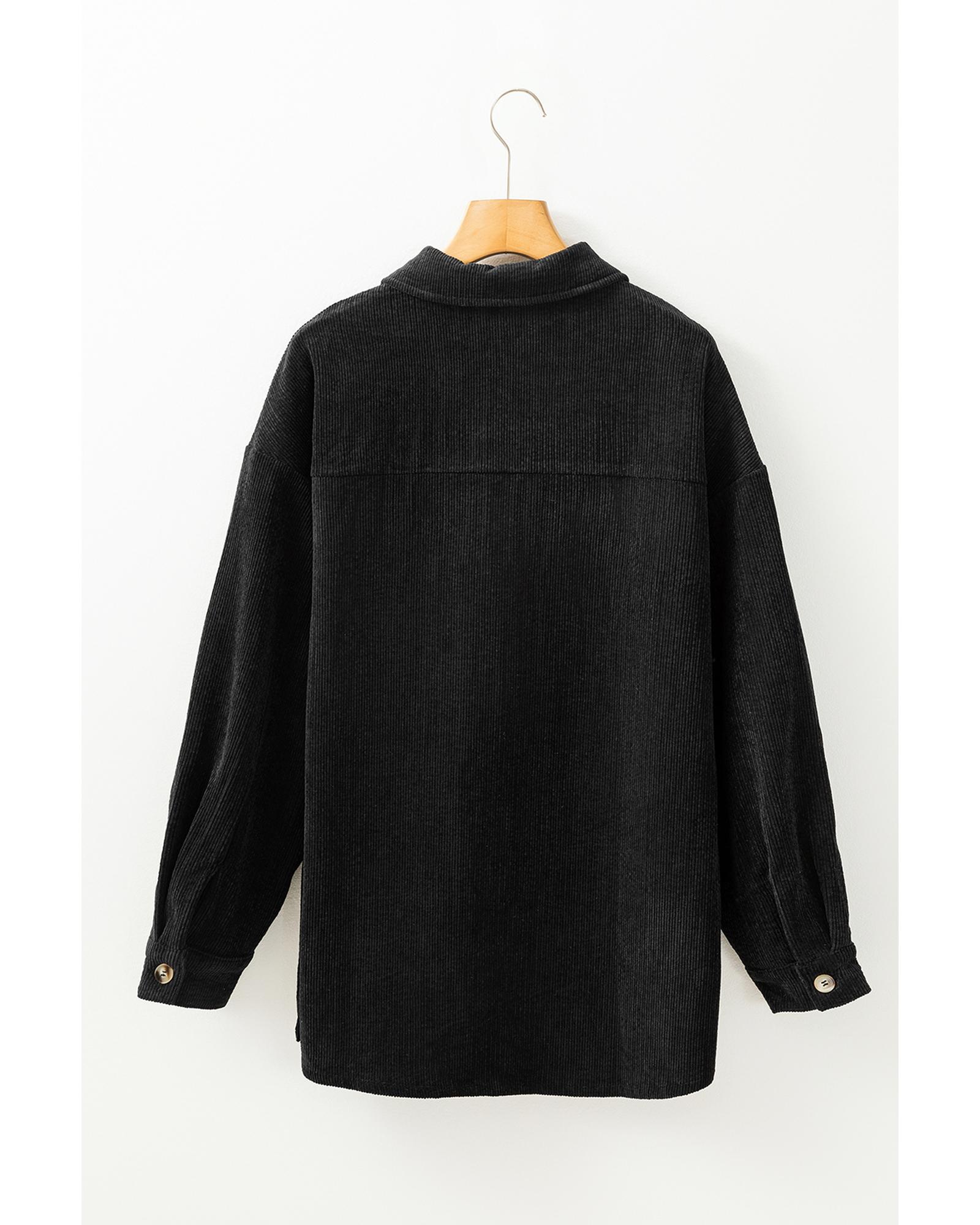 Black Corduroy Flap Pocket Button Up Shacket – S
