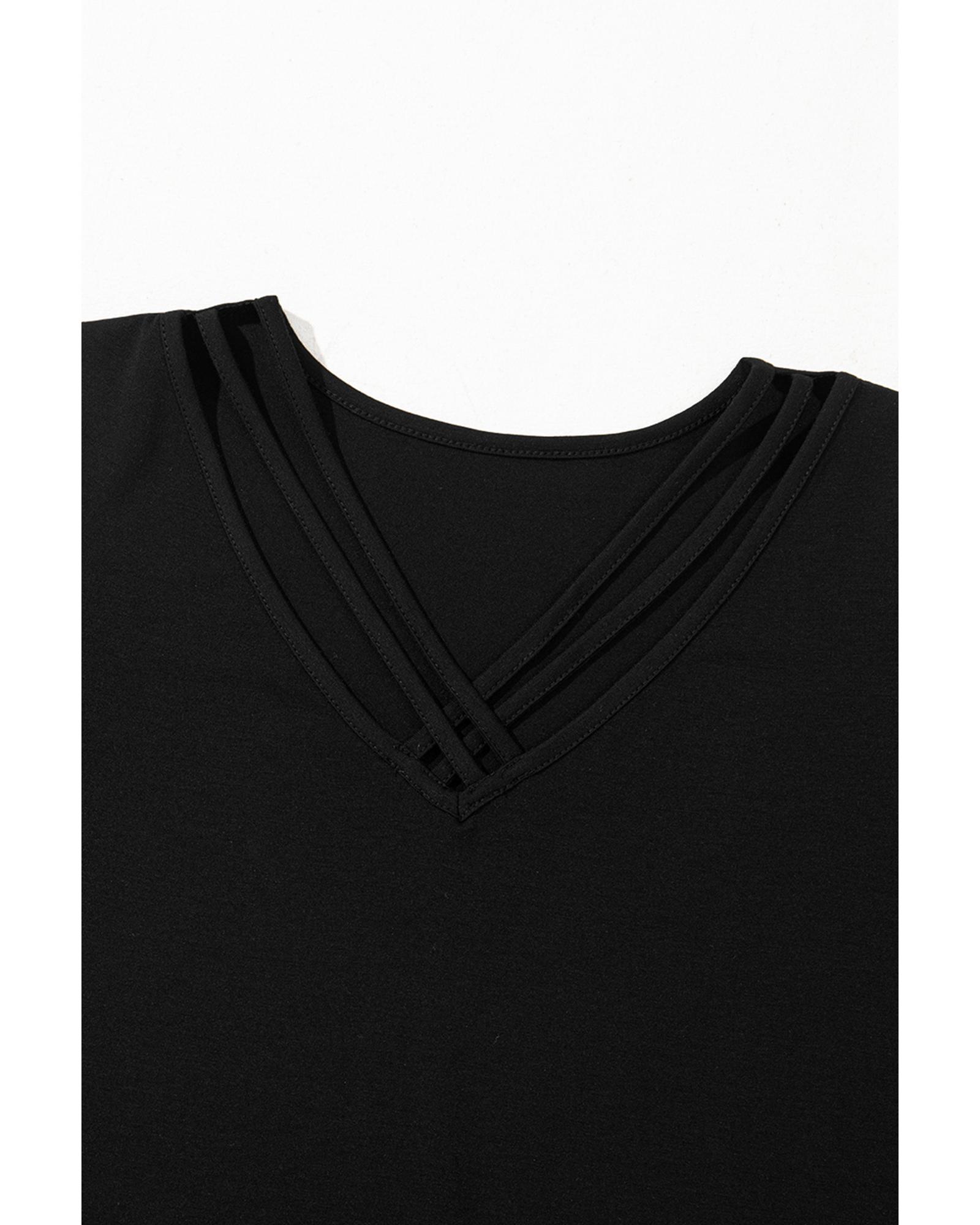 Black Crisscross V Neck Butterfly Sleeve T Shirt – XL